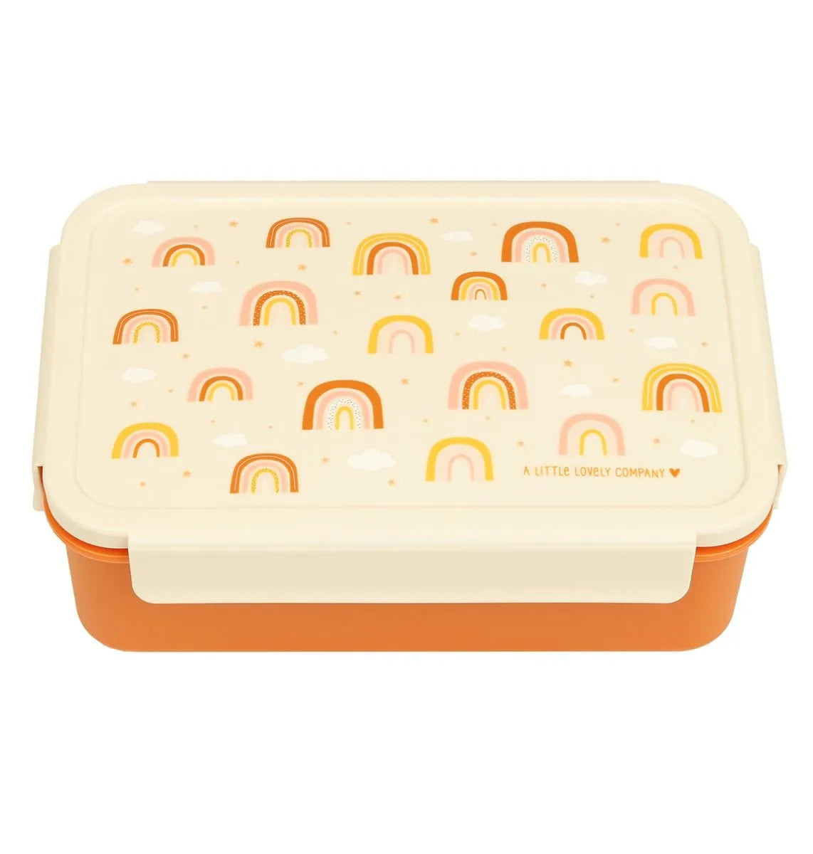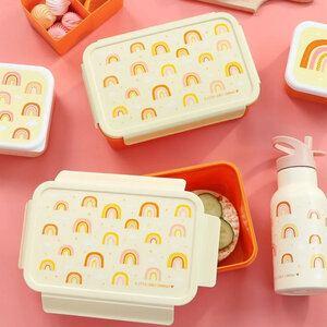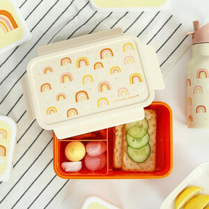 Ruime bento lunchbox met regenboog print. De luchtdichte click & close deksel en uitneembaar bento bakje zorgt voor een perfect georganiseerde lunch. Een ideale trommel voor een verse en gevarieerde lunch op school of onderweg. Eet smakelijk!