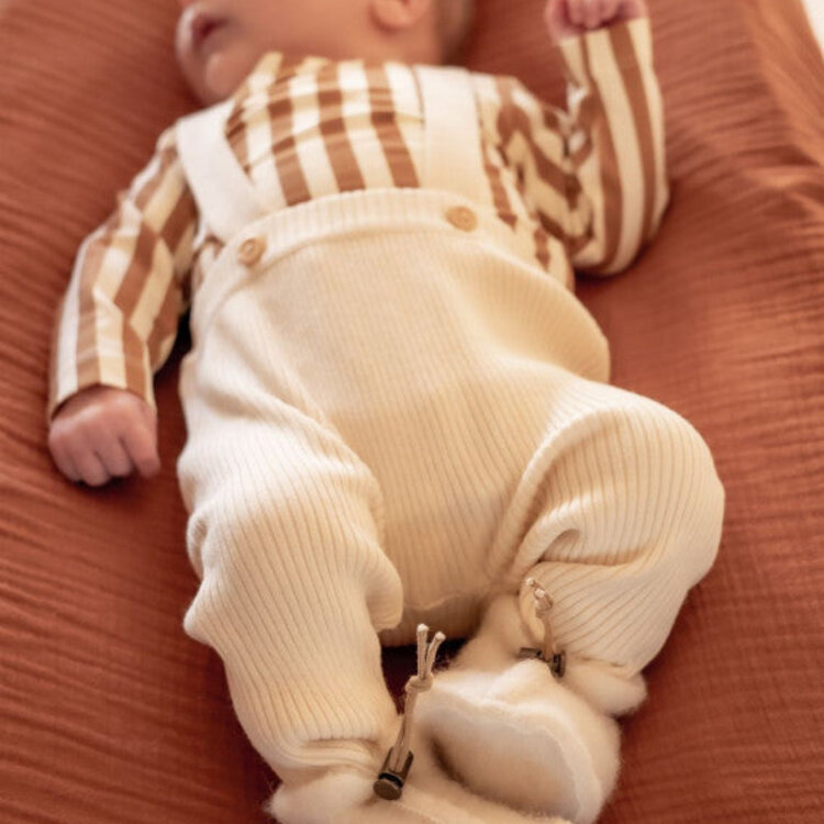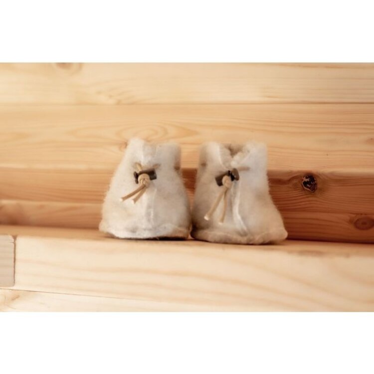 Alwero babyslof Emo. Super schattige slofjes voor je baby gemaakt van 100% wol. Natuurlijk materiaal, lekker warm, ademt en zweet niet. Wat wil je nog meer voor je kleintje? Er zit een koordje door de slofjes met een messing sluiting waardoor je de slofjes aan kunt trekken en ze niet zo makkelijk uitgaan. Deze slofjes zijn aan 2 kanten te dragen. Je kunt ze binnenste buiten vouwen zodat het wollige uiterlijk aan de buitenkant van de slof zit. Zo heb je 2 slofjes in 1! De babyslofjes zijn ook perfect als kraamcadeau.