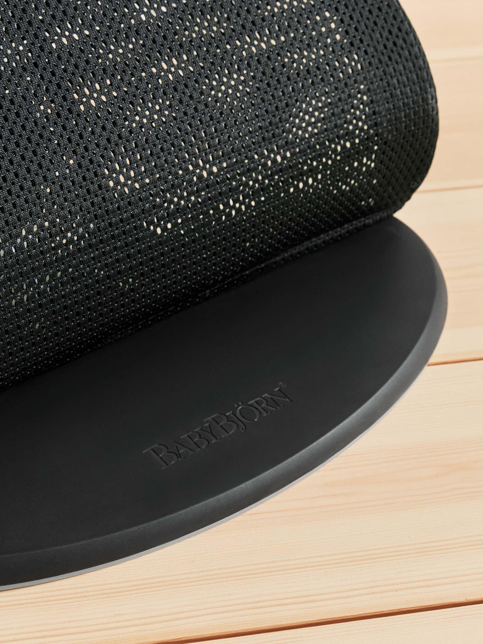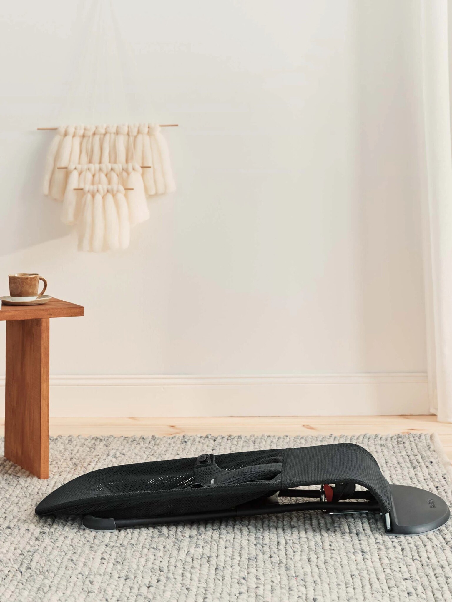 Wipstoeltje Bliss is een lichtgewicht en handig babywipstoeltje met een zwart frame en een stoffen zitting in gewatteerd katoen, superzachte 3D-jersey of luchtig gaas.