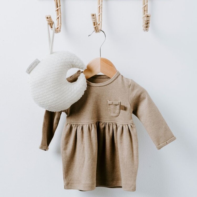 Het Jersey jurkje Melange in Warm Linen is heerlijk zacht en zorgt voor veel draagcomfort bij je kindje. Het is gemaakt van zeer zacht en rekbaar, 100% ecologisch katoen. Hierdoor kleed je je kindje makkelijk en snel aan en blijft het goed in model. Het Jersey Jurkje Melange is verkrijgbaar in diverse kleuren en maten.