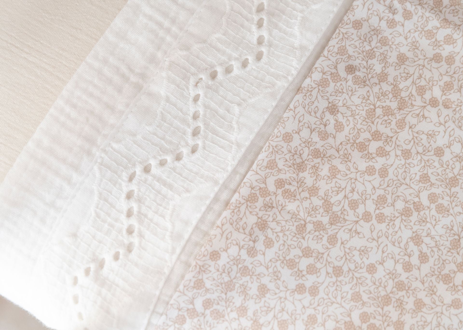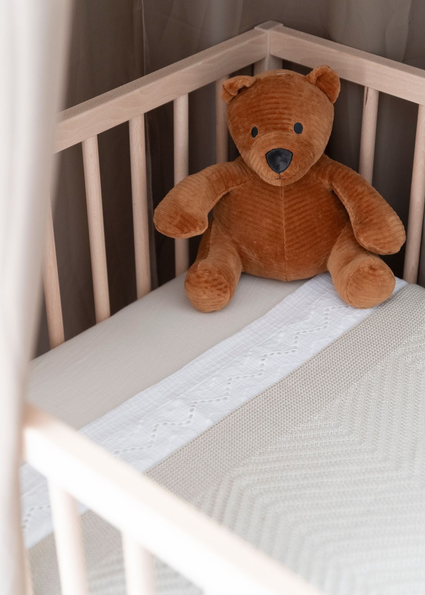 Ontdek tijdloze elegantie en rust met onze wieg- en ledikantlakens uit de Calm collectie. Deze lakens zijn vervaardigd van 100% katoen en bieden een zachte en comfortabele slaapomgeving voor je kleintje. De broderie details voegen een klassieke en chique uitstraling toe, waardoor de kinderkamer een vleugje verfijning krijgt.