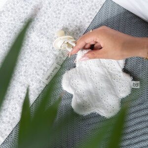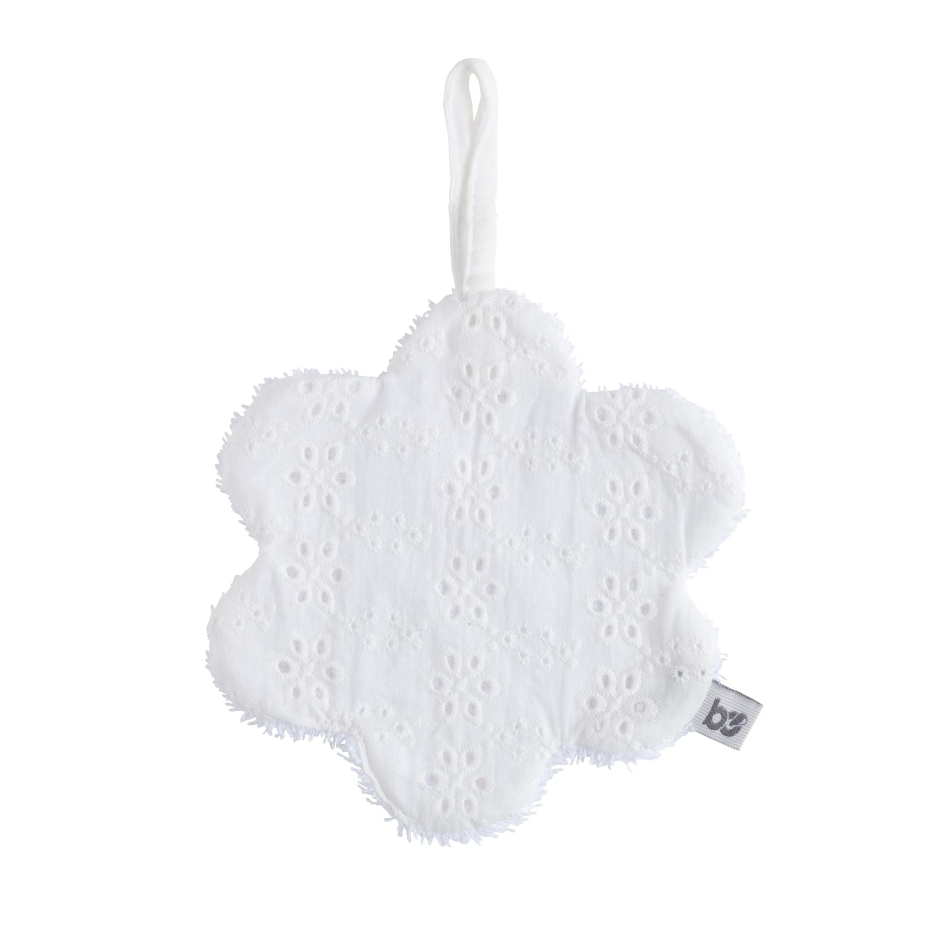 Verkrijgbaar in een neutrale witte kleur, past het Bloem Speendoekje bij elke babykamerdecoratie en is het een ideaal cadeau voor babyshowers of om de komst van een nieuwe baby te verwelkomen.