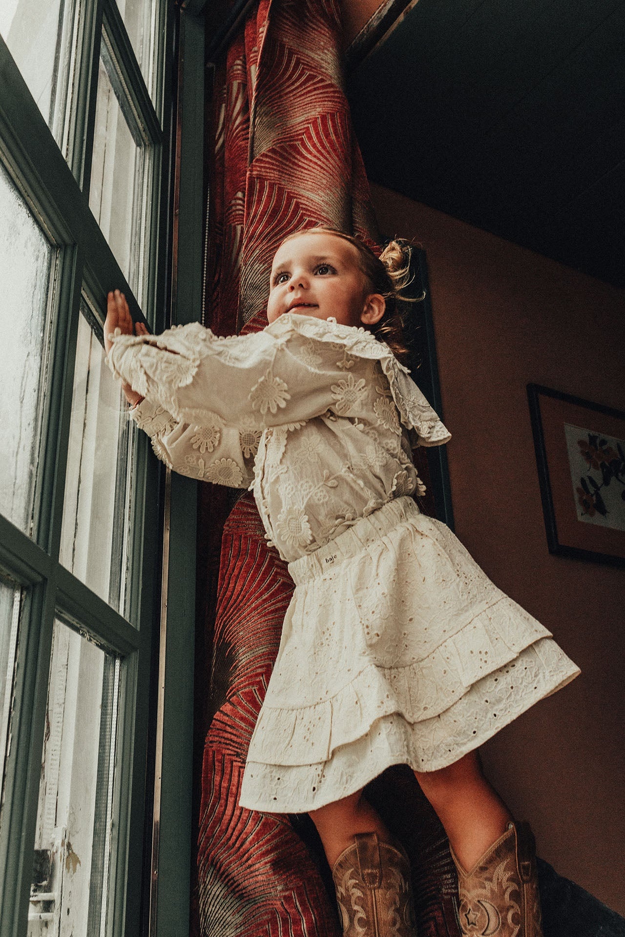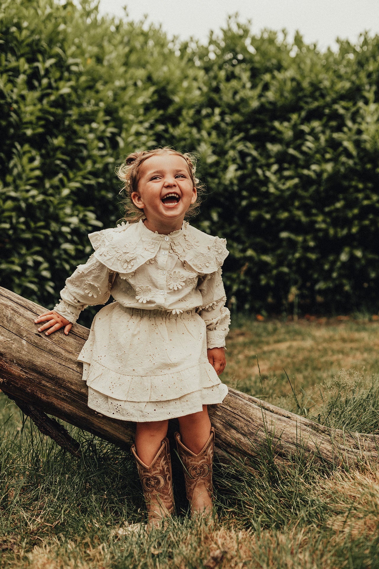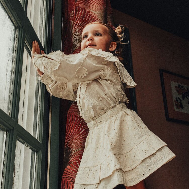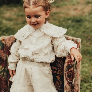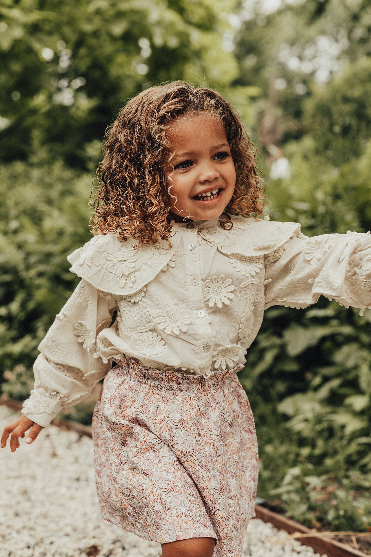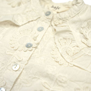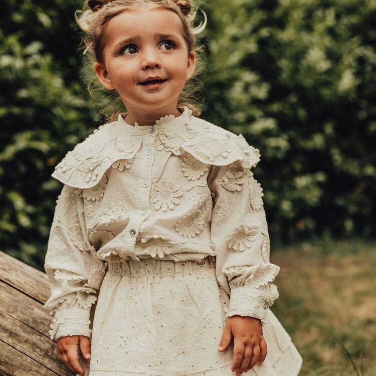 De 3D-bloemenblouse trekt de aandacht vanwege deze geweldige uitstraling. Deze losvallende blouse is geweven van een comfortabele katoenmix en heeft 3D-effect bloemendetails die een intrigerend patroon creëren - geïnspireerd op madeliefjes. Ballonmouwen met fijne plooien en een grote kraag benadrukken het meisjesachtige gevoel van de kwaliteit en het ontwerp.
