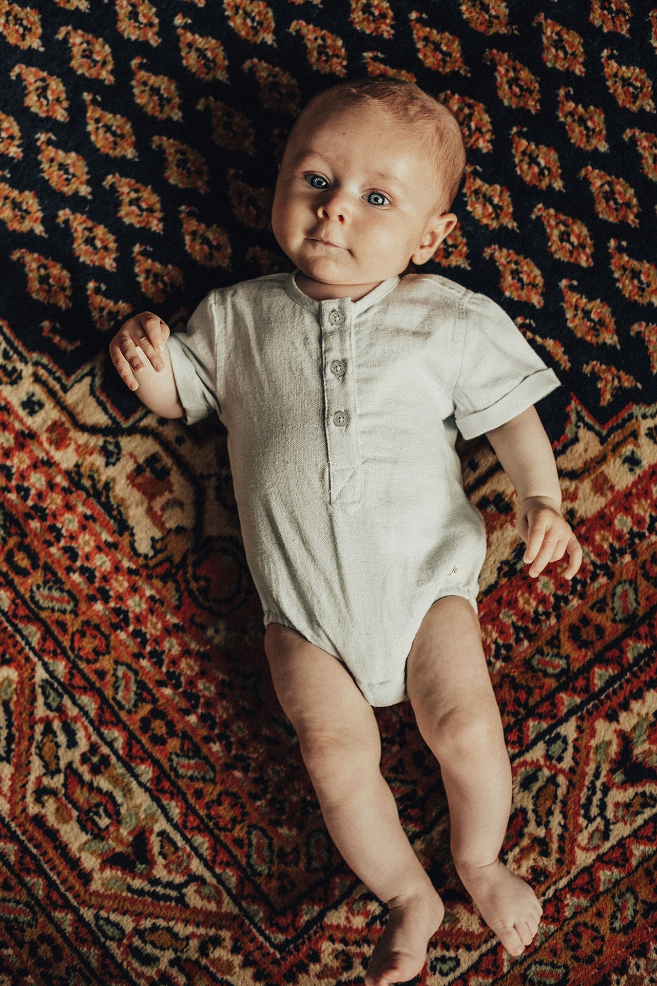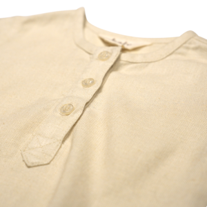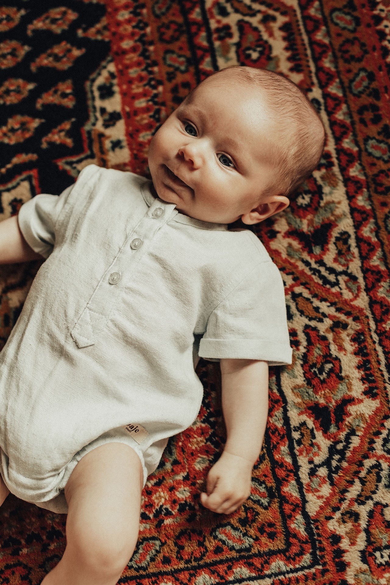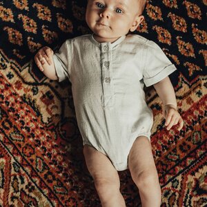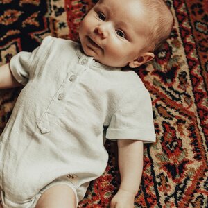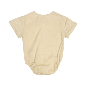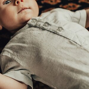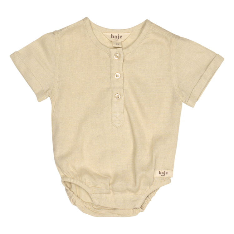 Het lieve rompertje van Baje brengt wat schattigheid in de garderobe van je baby. Het rompertje is comfortabel om te dragen en heeft drukknoopjes aan de onderkant om het aankleden van je baby te vergemakkelijken. Het is verkrijgbaar in 2 prachtige kleuren; zandkleurig en babyblauw. Het is perfect voor de vele speciale gelegenheden en gezellige dagen, waar je het kunt stylen met een korte of lange broek en een breisel om de schattige look compleet te maken.