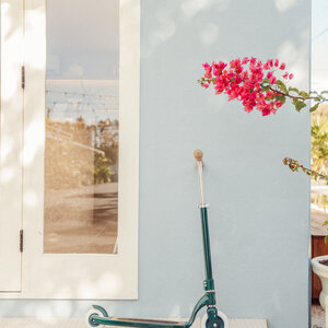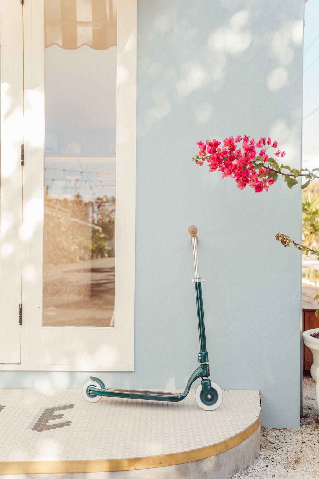 Deze groene step met twee wielen is gebouwd om de tand des tijds te doorstaan en is uitgerust met een ergonomische T-stuurstang die eenvoudig kan worden aangepast aan de lengte van je kind, een lichtgewicht aluminium frame, klassiek stuursysteem - net als een fiets, vintage-geïnspireerde rubberen handvatten en een houten anti-slip dek van eikenhout voor een veilige rit.