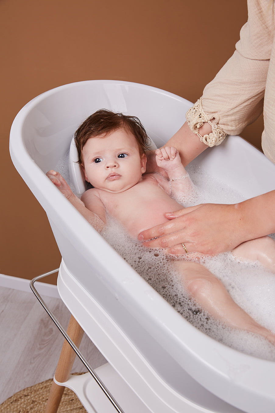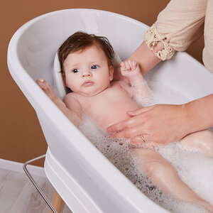 Via een draadloze verbinding wordt de informatie weergeven op de digitale module. De mooi uitgevoerde en handige led-module met touch-oppervlak is voorzien van een timer die je op 10 minuten kunt instellen. Zo kun je lekker badderen, zonder dat je baby te lang in het water ligt en de huid niet uitdroogt.