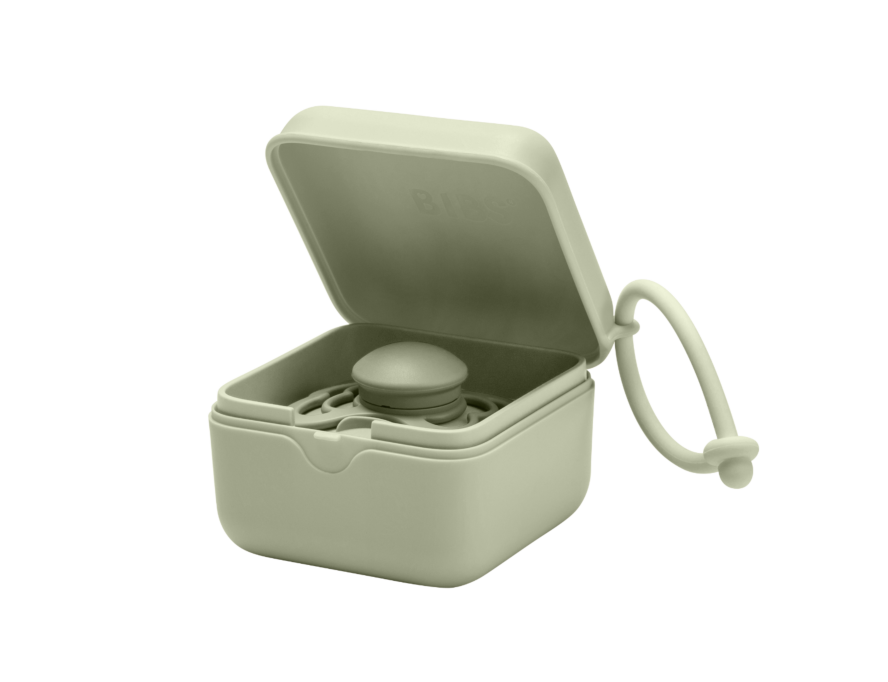 Het doosje kan maximaal drie BIBS-fopspenen bevatten, maar wordt ook geleverd met een fopspeeninzet die één enkele fopspeen kan bevatten. Het inzetstuk past op al onze verschillende fopspenen - dus welke dan ook BIBS fopspeen je voorkeur heeft, het doosje past.