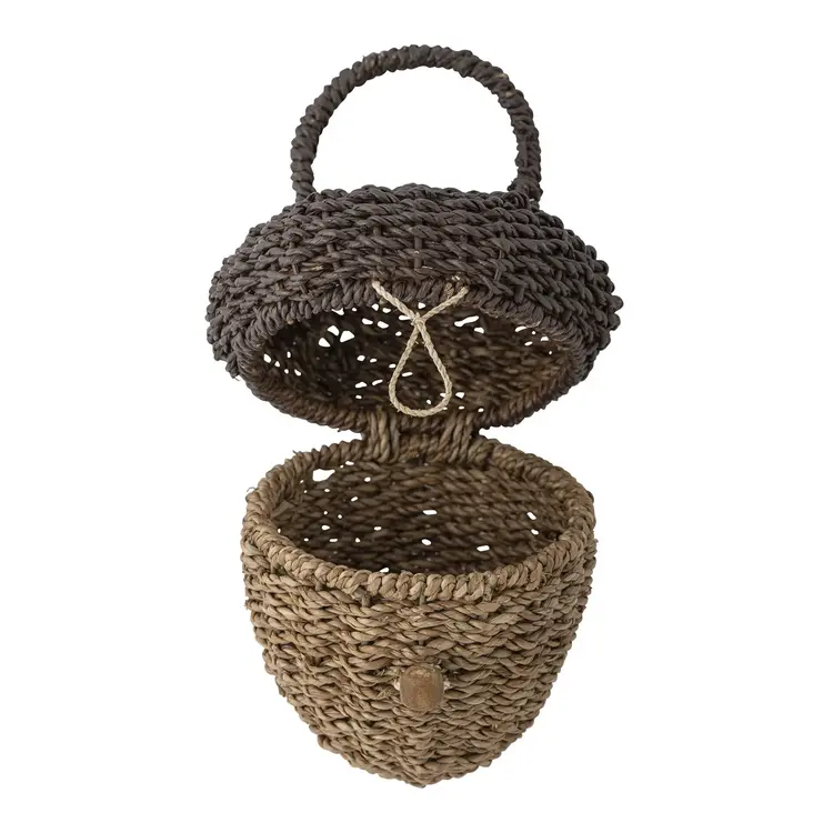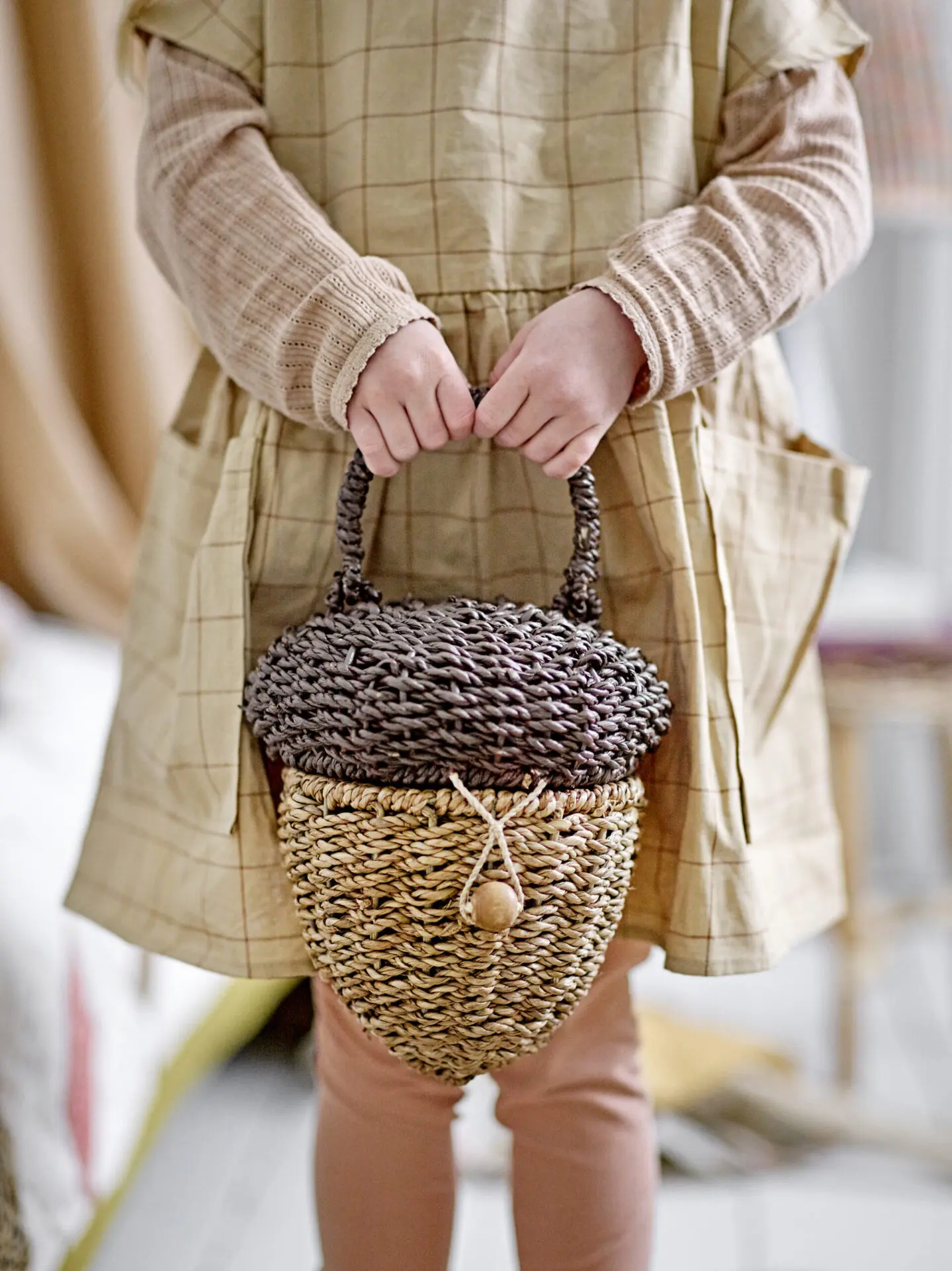Of het nu gaat om een draagtas of decoratieve opslag, de tas PIPPA (18x19cm) in bruin van Bloomingville overtuigt met zijn originele ontwerp en zorgvuldige afwerking. De eikelvormige tas is geweven van bankuan gras en voorzien van een knoopsluiting.