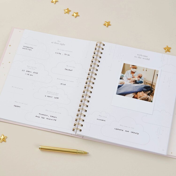 Een nieuwe baby is een spannend avontuur om nooit te vergeten. Van zwangerschapsherinneringen tot eerste stapjes en driftbuien, 'My Baby Book' bevat 114 pagina's om je dierbaarste herinneringen samen vast te leggen (vanaf de geboorte tot 5 jaar) en veel ruimte om het verhaal van je baby in te vullen om op terug te kijken in de komende jaren. Het bevat genoeg pagina's waar gevraagd wordt zodat je niet vastzit om dingen te schrijven, terwijl er toch genoeg ruimte overblijft om het te personaliseren en je eigen inhoud en foto's toe te voegen.