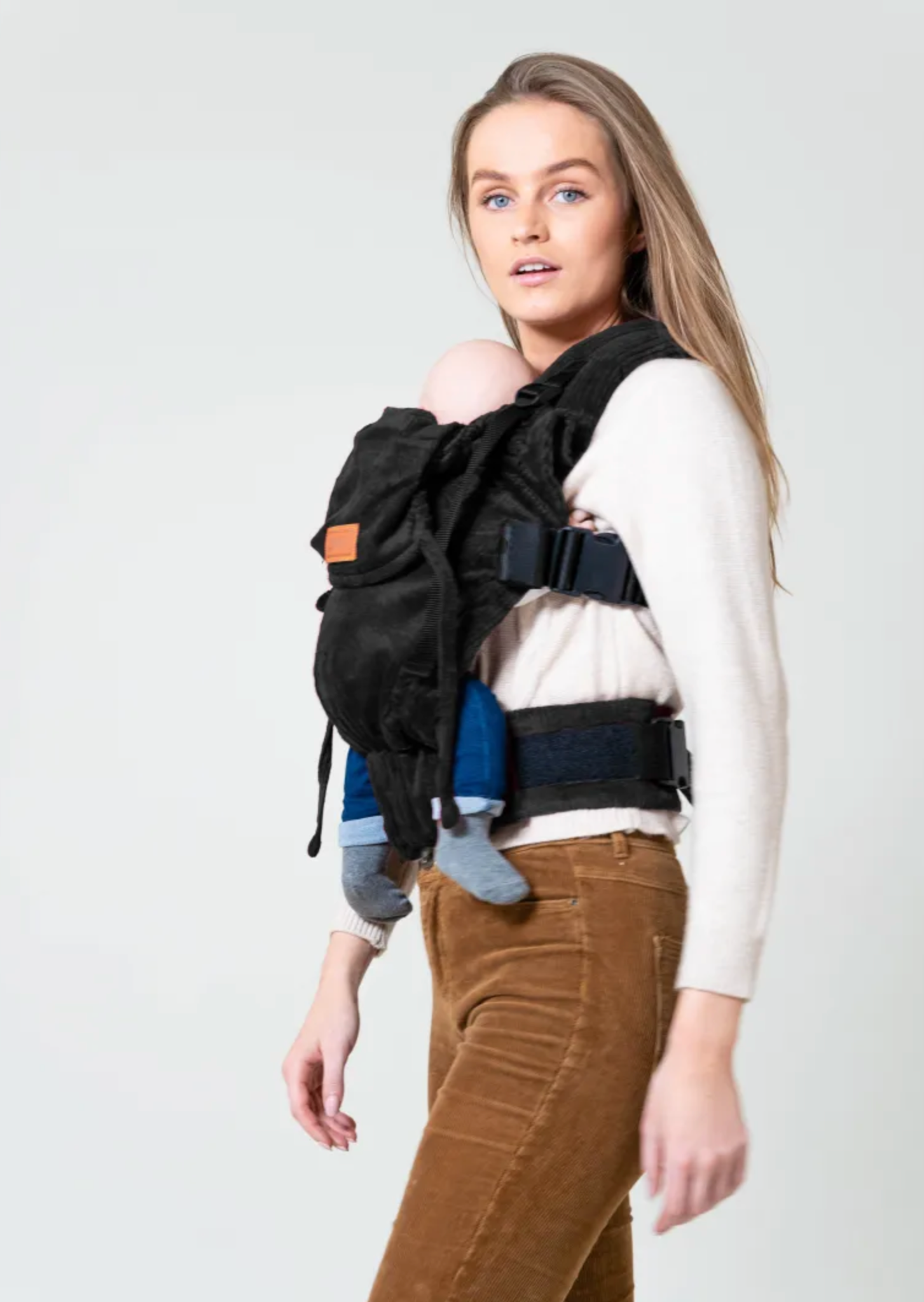 De Click Carrier Deluxe heeft een stevige foam buikband en een handig slaapkapje. Een koordje in de nek zorgt voor optimale nekondersteuning. Ook heeft de draagzak een verstelbaar rugpand, zodat hij een perfecte pasvorm heeft voor pasgeborenen, maar ook voor grotere kinderen. De banden zijn mooi weg te werken door middel van de elastiekjes aan de uiteinden. De los bijgeleverde voetsteuntjes zorgen voor een ergonomische M-positie bij de grotere kinderen. Je kunt de Click Carrier Deluxe eenvoudig en zonder hulp om doen.