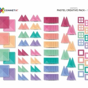 Ontworpen om urenlang grenzeloze creativiteit, plezier en leren door spelen aan te moedigen, bevat ons Pastel Creative Pack een verscheidenheid aan vormen in 8 pastelkleuren. Het is een geweldige startersoptie voor familiespel, het bouwen van grotere Connetix-creaties en het uitbreiden van het kleurengamma dat uw kinderen herkennen!