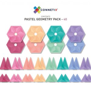 De Connetix Pastel Geometry Pack (40 stuks) is een prachtige set magnetische bouwstenen die zowel educatief als creatief spelen stimuleert. Dankzij de 8 unieke pasteltinten en de combinatie van zeshoeken en driehoeken is deze set perfect om kinderen te introduceren in de wereld van geometrie en bouwen.
