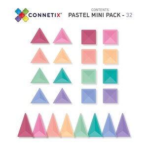 Of u nu uw Connetix-reis wilt beginnen, een cadeau zoekt of uw collectie magnetische tegels wilt uitbreiden, het 32-delige Pastel Mini Pack is de perfecte keuze.