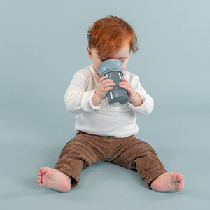 Met de 360 graden beker maakt het niet uit waar het kindje aan de rand drinkt. Wanneer het kindje aan de rand zuigt, kan het kindje drinken. Door de vorm van de beker stroomt het drankje naar de rand wanneer je de beker horizontaal houdt. Dit zorgt ervoor dat je kind de nek niet naar achter hoeft te buigen. Door het slanke ergonomische model is de beker goed vast te houden voor kleine handjes.
