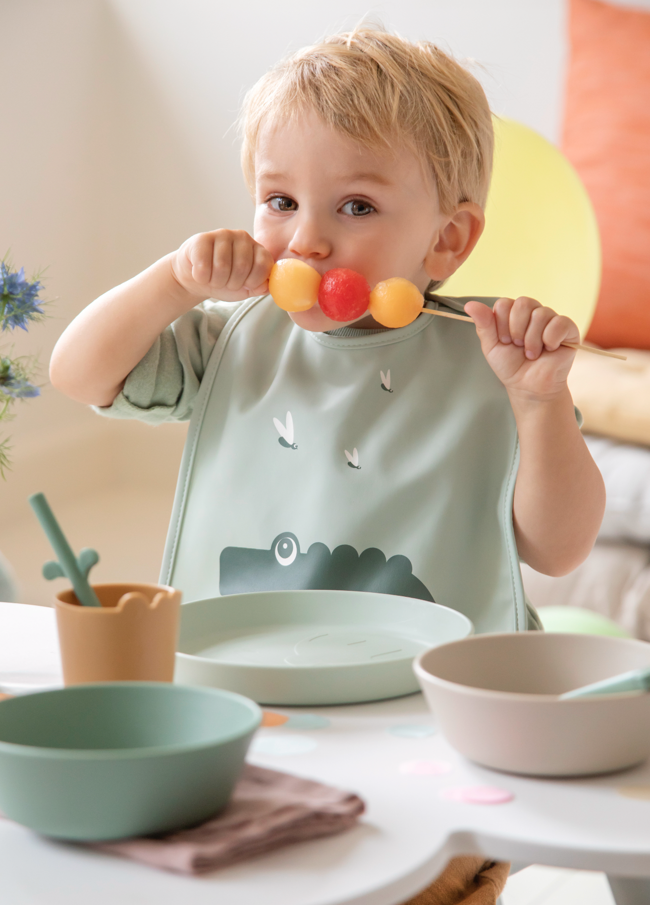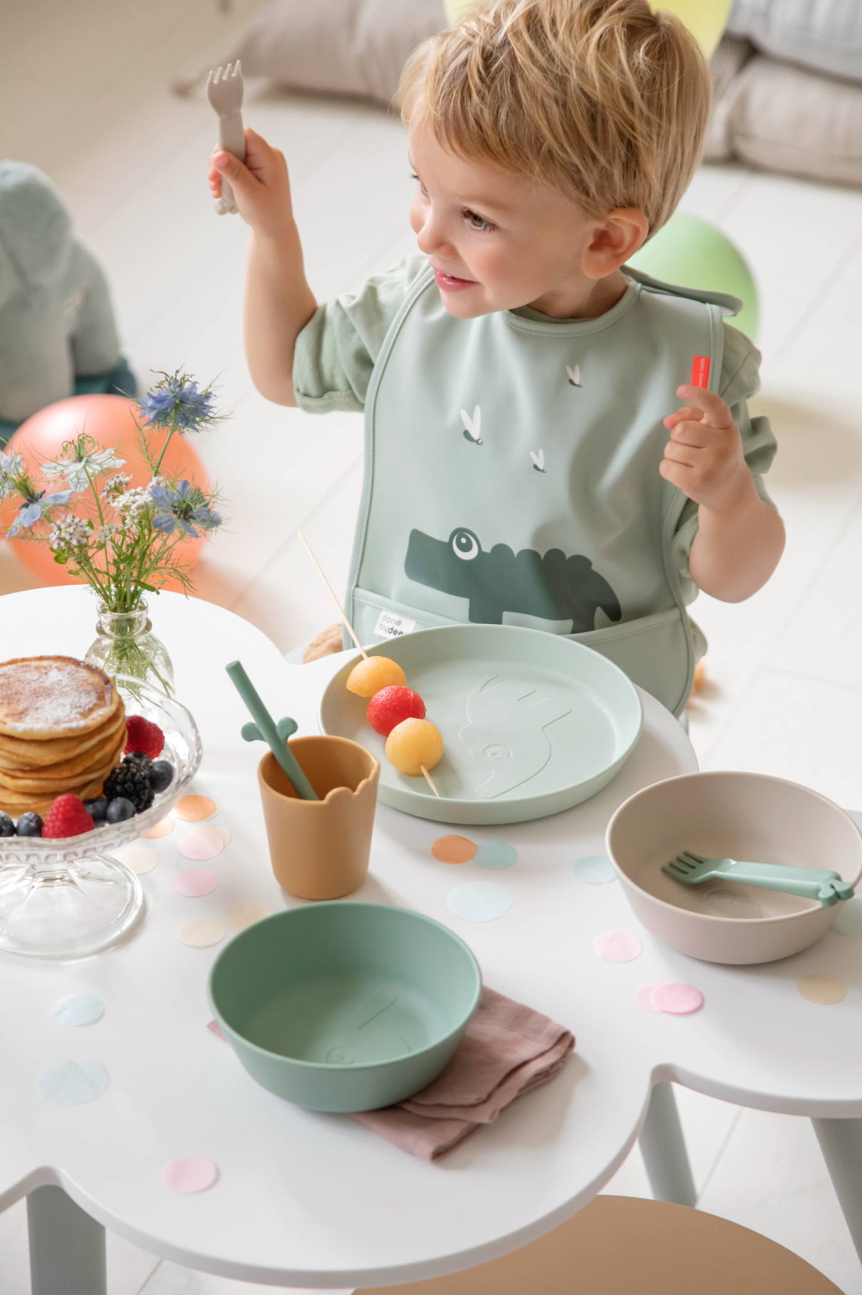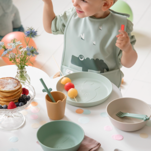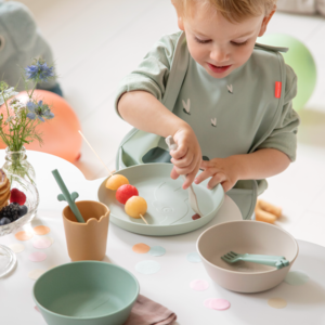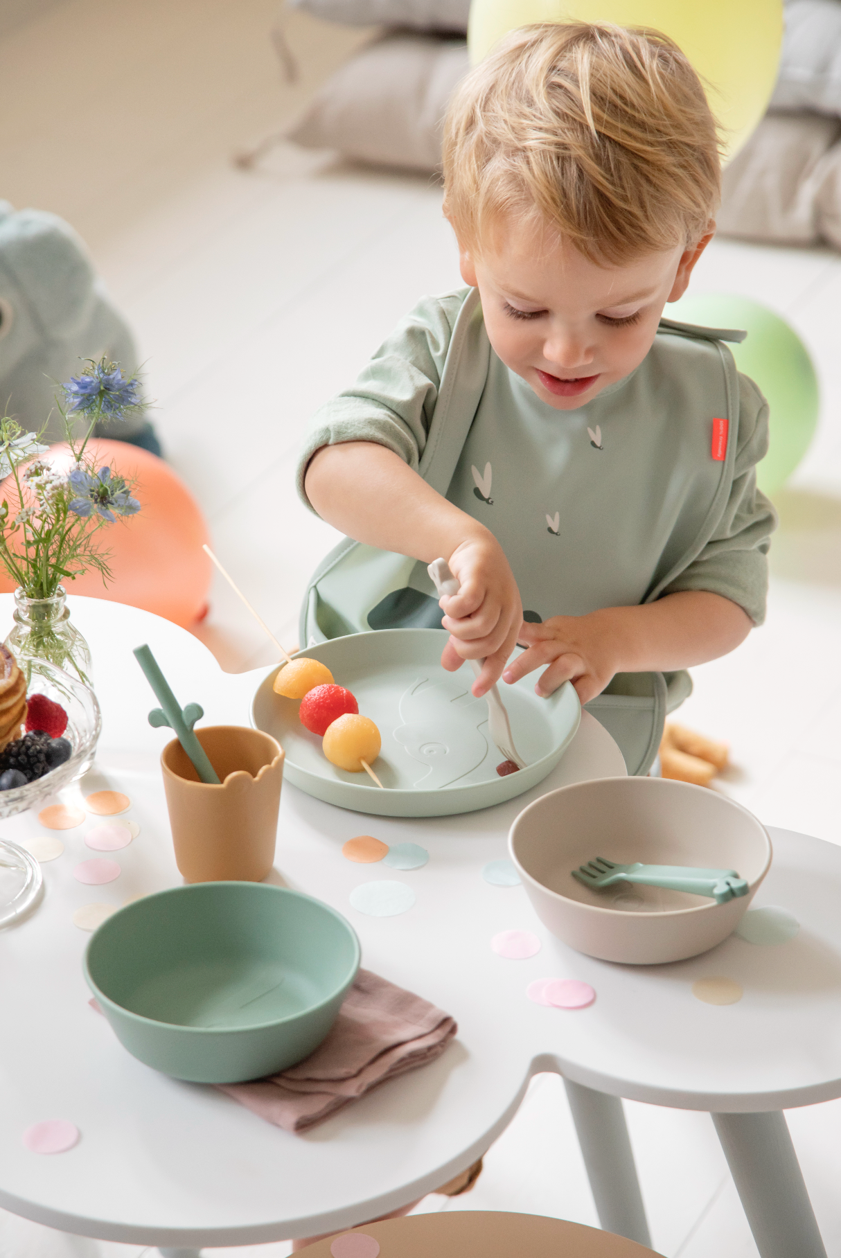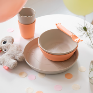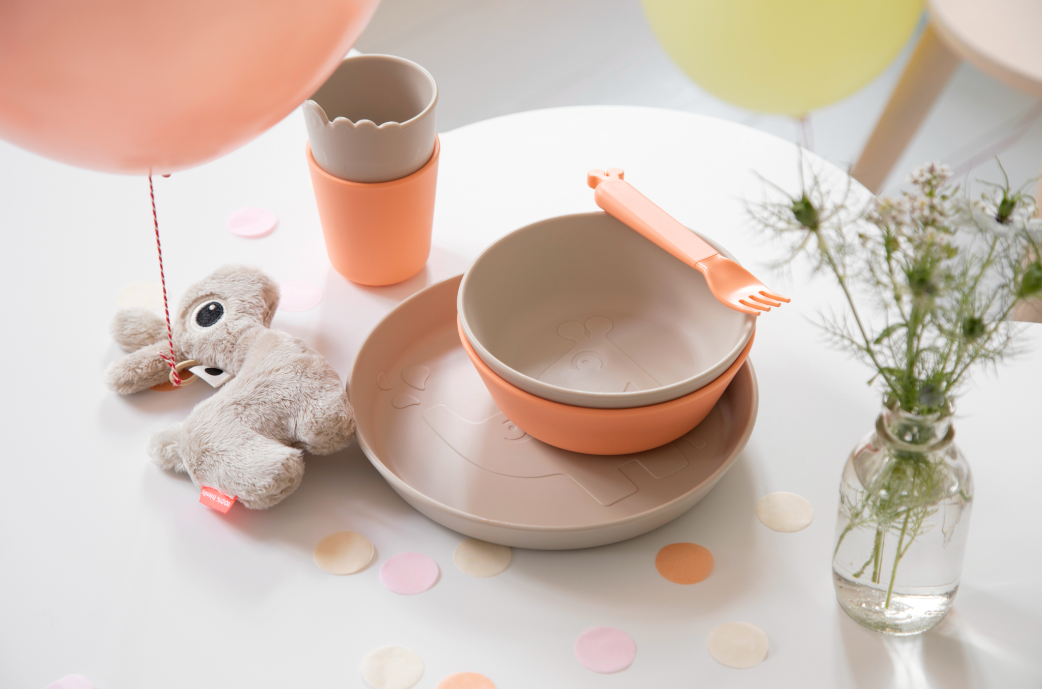 De kinderkom is duurzaam en gemaakt in Denemarken. Na talloze gezinsmaaltijden, feestjes en picknicks kan de kom als hard plastic worden gesorteerd en gerecycled tot nieuwe producten, zoals meubels, sneakers of vezels voor het maken van kleding.
