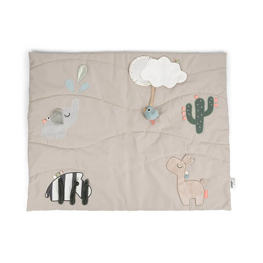 Met het Done by Deer Speelkleed Deer Friends geef je je baby een comfortabele en stimulerende plek om te spelen. Het zachte speelkleed in de neutrale kleur Sand is voorzien van vrolijke illustraties van de bekende Deer Friends-figuurtjes, die je baby uitnodigen om te ontdekken en te bewegen.
