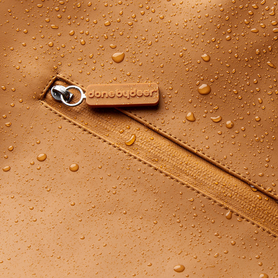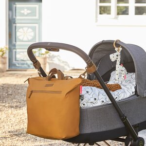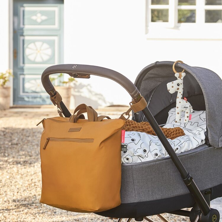 Een prachtige, duurzame en waterproof verzorgingstas/rugzak van Done By Deer, gemaakt van gerecyclede flessen (38 stuks). De tas heeft 7(!) binnenvakken en ook aan de buitenkant een extra vak. Inclusief verschoningsmatje en haken voor de kinderwagen.