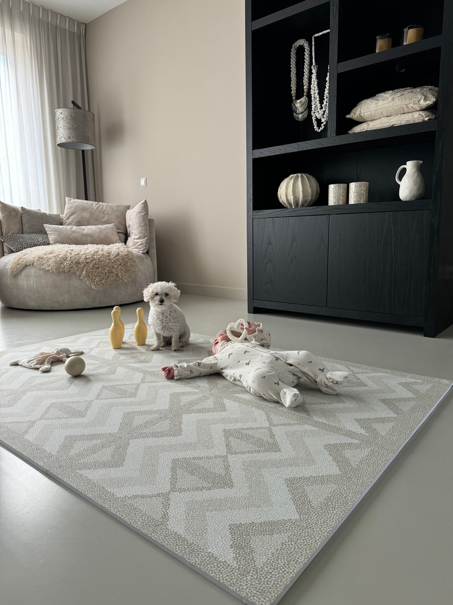 De speelmatten zijn zo ontworpen dat deze ook mooi gepresenteerd kunnen worden in het interieur. De speelmatten zijn eindeloos te combineren bij alle andere producten binnen de Eeveve collectie.