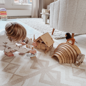 De speelmatten zijn zo ontworpen dat deze ook mooi gepresenteerd kunnen worden in het interieur. De speelmatten zijn eindeloos te combineren bij alle andere producten binnen de Eeveve collectie.