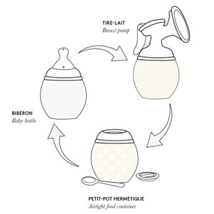 Élhée maakt het leven van moeders gemakkelijker door een adapterring aan te bieden waarmee de BiBrond en de Bubble rechtstreeks op de Avent- of Medela borstkolf kunnen worden geschroefd. De AVENT-borstkolfadapter: en een 3-in-1-adapter waarmee melk kan worden afgekolfd, bewaard en verwarmd met draagbare flessenwarmers (Philips Avent, Izybaby en Munchkin)