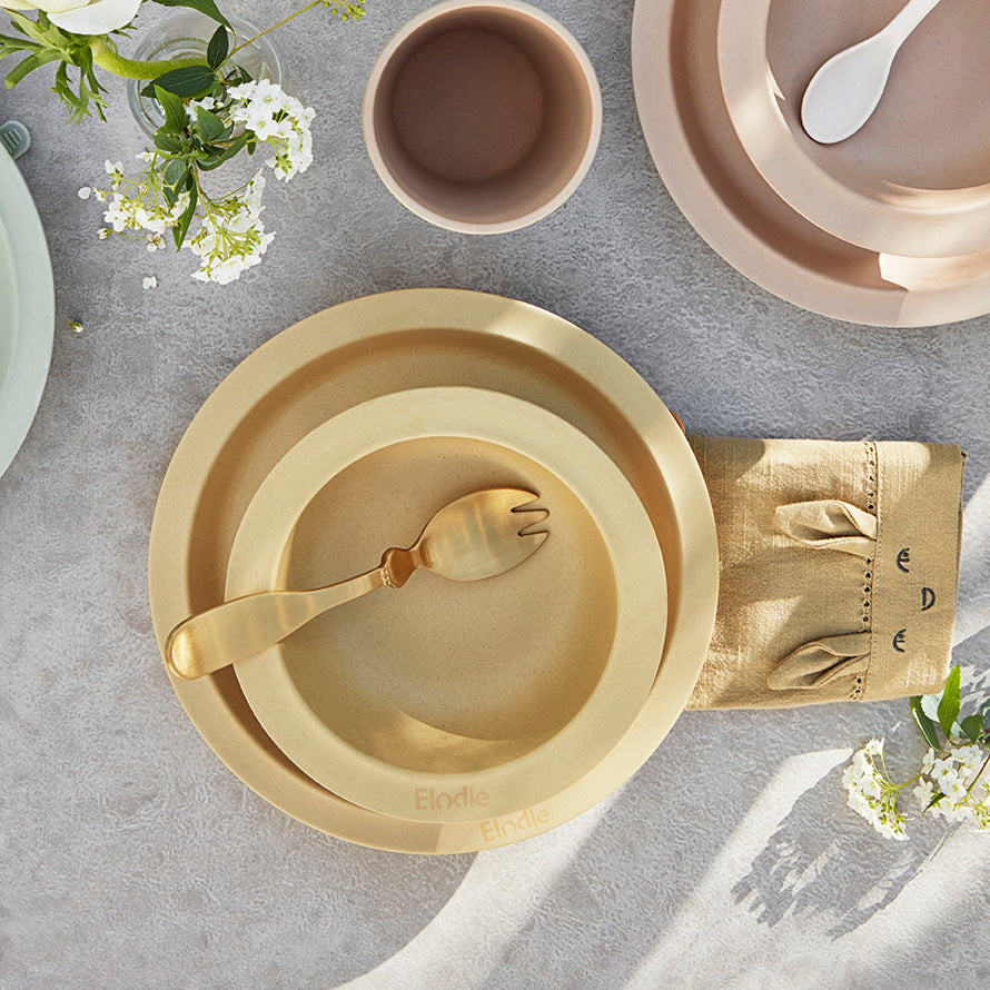 Breid uw tafelaankleding uit met onze prachtige bestekset voor kinderen. Ons driedelige servies bestaat uit een mes, vork en lepel in een klassiek maar modern ontwerp. Deze bestekset blijft ook mooi gedurende het volwassen leven, maar het formaat is speciaal afgestemd op kleine peuterhandjes. Deze set heeft dikke handvatten zodat uw jonge baby betere grip krijgt, en is optimaal voor wanneer u kinderen die voor het eerst mee-eten, leert hoe ze bestek moeten gebruiken. Het gepolijste metalen bestek is een tijdloze klassieker die overgeërfd kan worden en generaties lang gebruikt kan worden. En dat is wat voor ons bij Elodie duurzaamheid betekent.