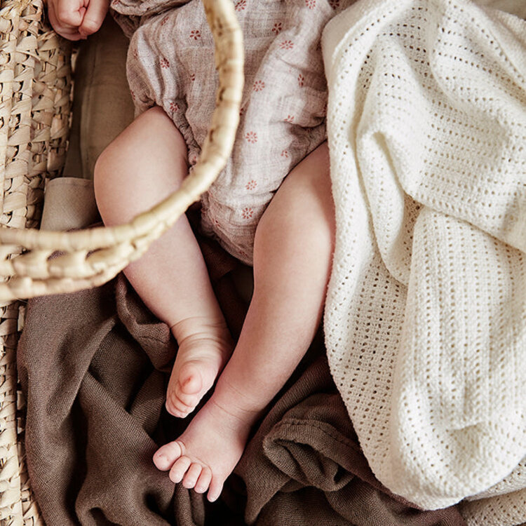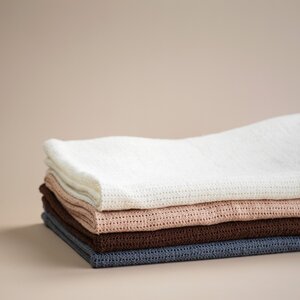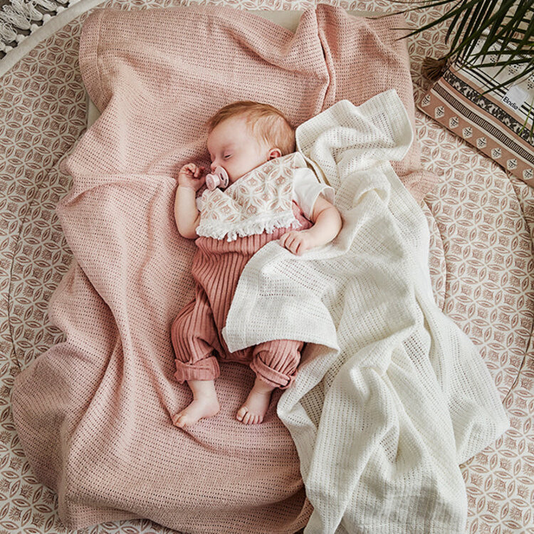 Onze gebreide katoenen babydekens zijn ideaal voor het kleinste nieuwe gezinslid. Door de kleine openingen in de stof voelt het dekentje comfortabel, zacht en licht aan en het slimme cellulaire ontwerp houdt de lucht vast, waardoor je baby 's winters warm en 's zomers koel blijft. Door het hoge ademende vermogen van het materiaal zijn deze wikkeldekens eenvoudig laag over laag te gebruiken en te combineren met andere dekens, afhankelijk van de temperatuur van de omgeving.
