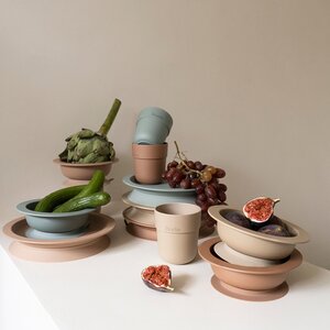 Dit servies voor kinderen bestaat uit een bord, kom en mok voor peuters die vast voedsel, nieuwe smaken en het plezier van zelf eten ontdekken. De slimme en verwijderbare zuignappen zorgen ervoor dat het bord op elk vlak oppervlak blijft staan, met als bonus dat je minder vaak de vloer hoeft te schrobben.