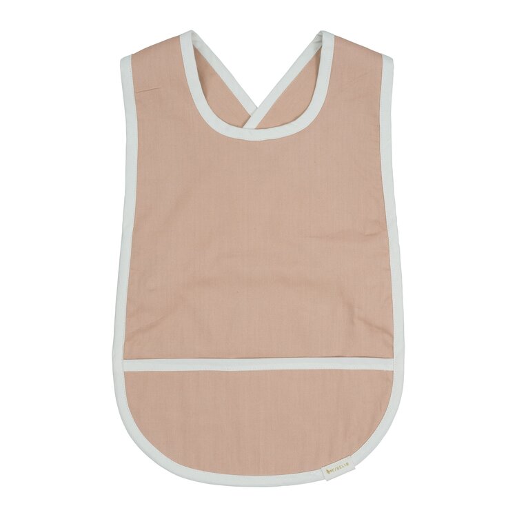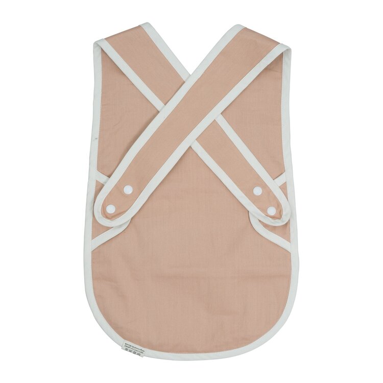 Het slabbetje heeft een zakje aan de voorkant om alle kleine beetjes eten in op te vangen en wordt aan de achterkant gesloten met verstelbare knoopjes.Let op: de waterafstotendheid zal na verloop van tijd vervagen bij gebruik van het Slabbetje met Cross Back.