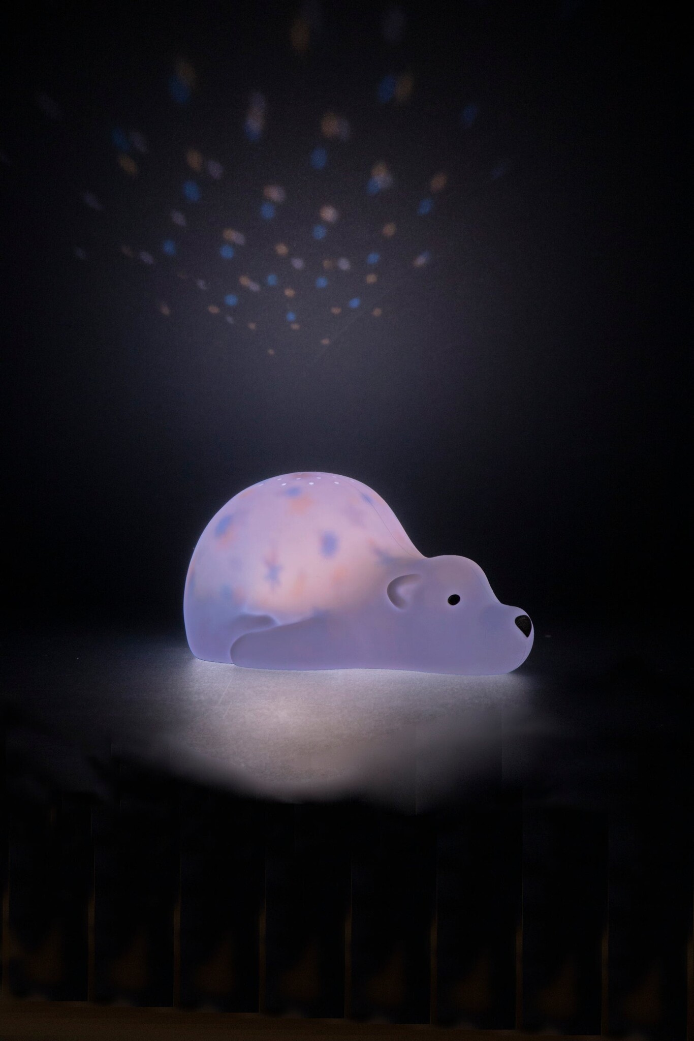 Onze Björn Projector zal je kamer in een magische wereld veranderen. Je kleintje kan vredig in slaap vallen als hij kijkt naar björn en de projectie op het plafond. Björn is ook een nachtlampje met sterretjes over zijn hele lichaam. Op Björn zitten zes verschillende lichtopties. Wit, blauw, geel, alle kleuren, vervagen tussen de kleuren en alle kleuren aan/uit vervagen. Daarnaast is het mogelijk te kiezen tussen drie felheidsopties. Björn is oplaadbaar en heeft een optionele timer van 30 minuten. Kijk naar de productvideo om een nog beter beeld te krijgen van onze Björn en hoe deze er uit zou zien in de kamer van jouw kindje!