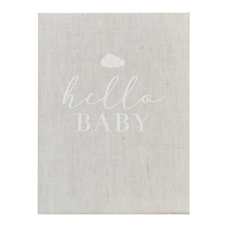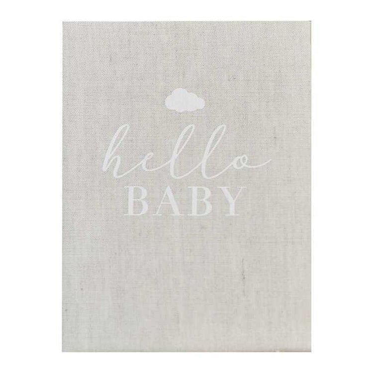 Dit schattige babyboek is gemaakt van harde achterkantstof met een mooie neutrale linnen afwerking.