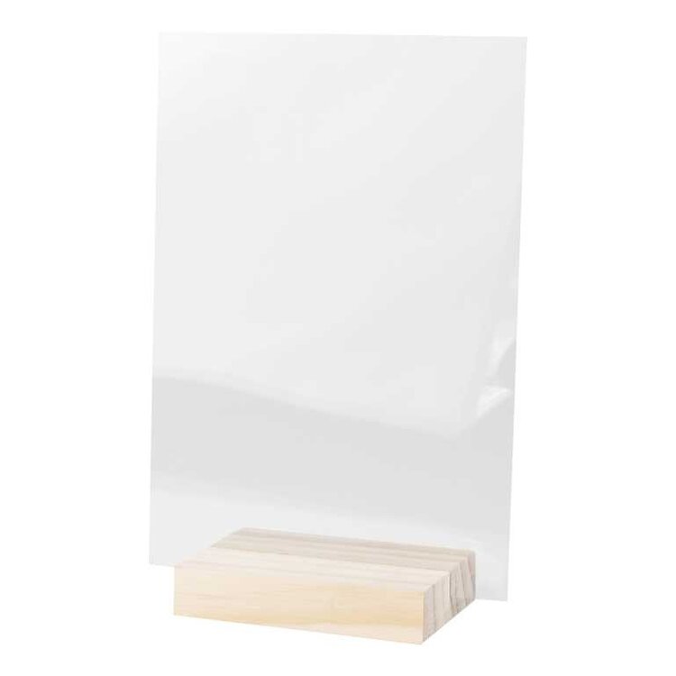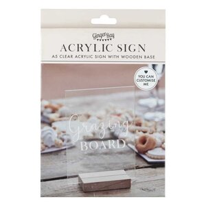 Personaliseer jouw evenement met het acryl bord met houten standaard. Van tafelnummers tot borden voor het eten of op de bar - de creatieve mogelijkheden zijn eindeloos!