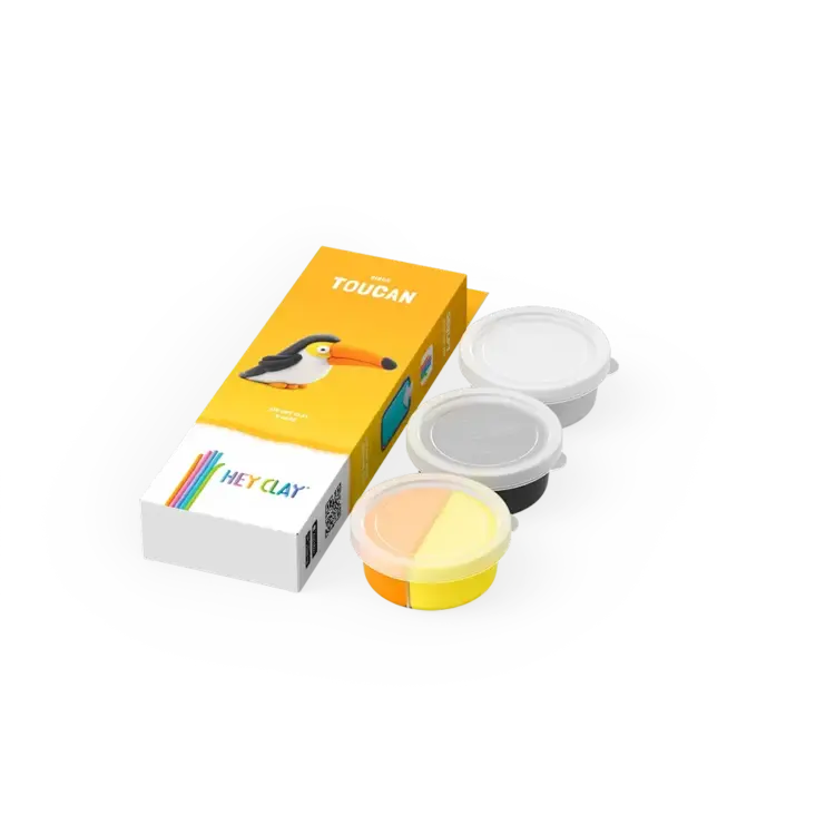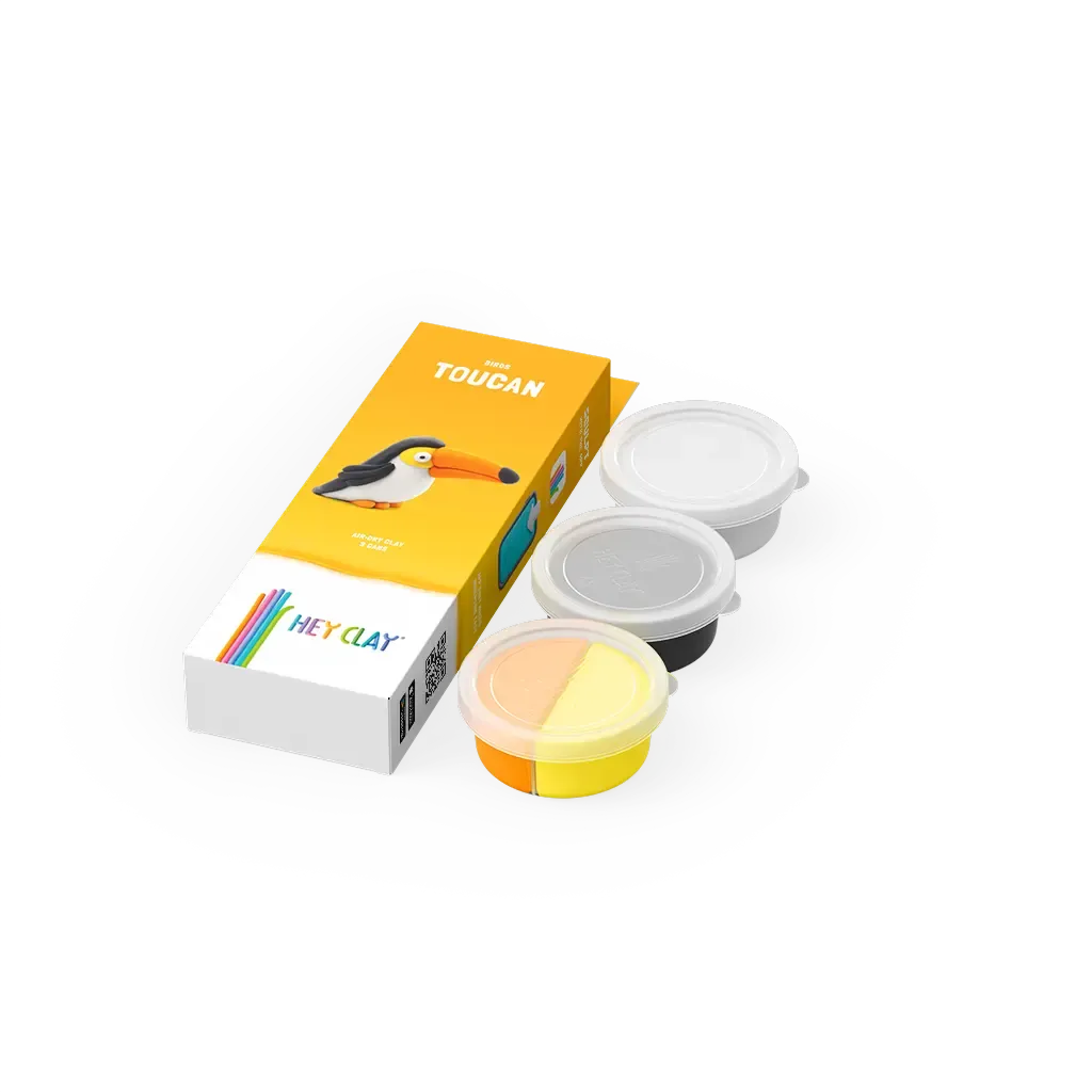 Met de Hey Clay Birds Toucan breng je een tropisch tintje in huis! Kleuren, vormen en lachen – dat is waar deze set om draait. Maak een vrolijke toekan met zijn grote snavel en levendige vleugels. De app laat je zien hoe eenvoudig het is. Creatief plezier gegarandeerd voor jong en oud!