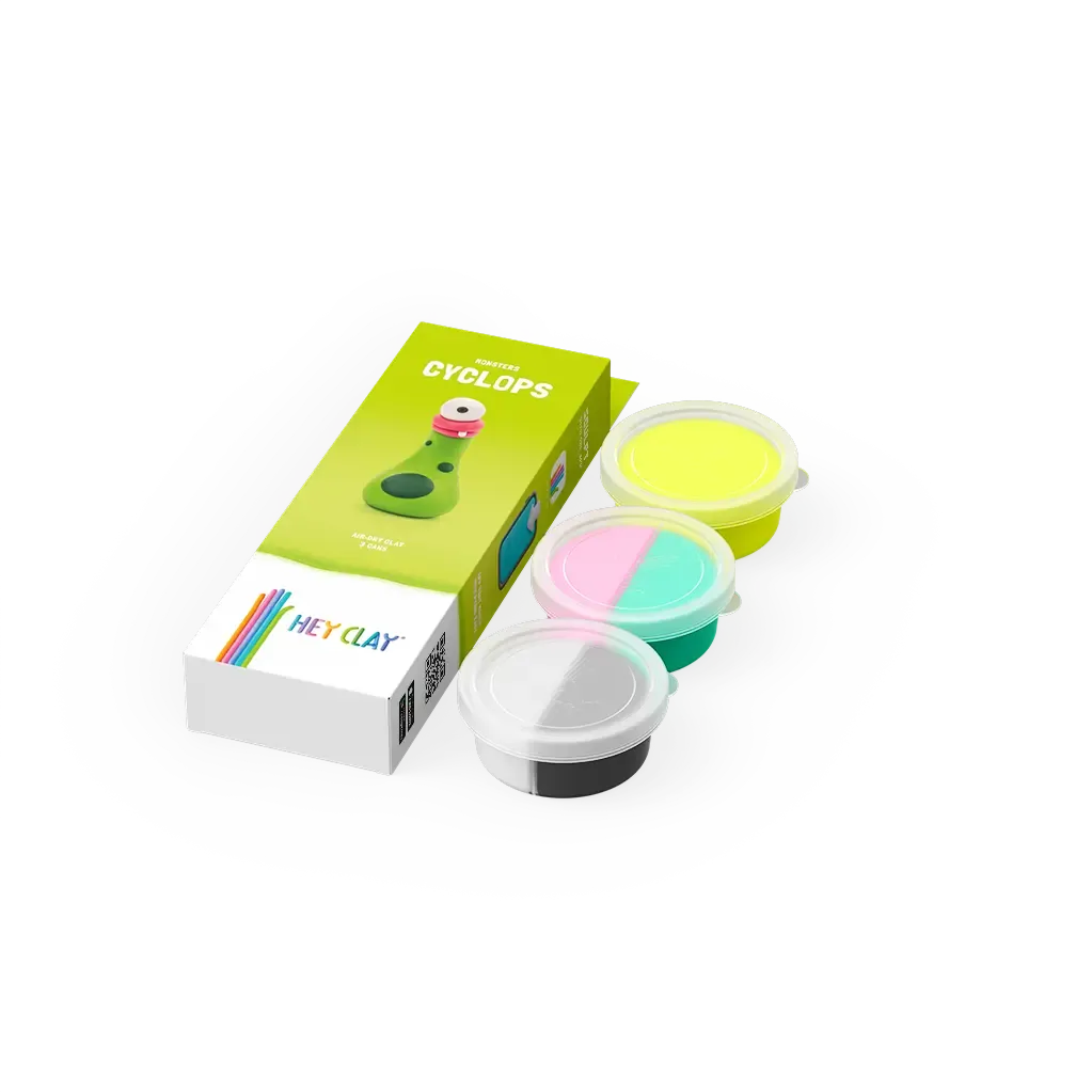 Een oog, veel persoonlijkheid! Met de Hey Clay Cyclops set maak je een grappige eenogige vriend vol kleur en karakter. De zachte klei is ideaal om mee te boetseren en stimuleert de creativiteit van kinderen. Volg de app en zie je Cyclops groeien voor je ogen!