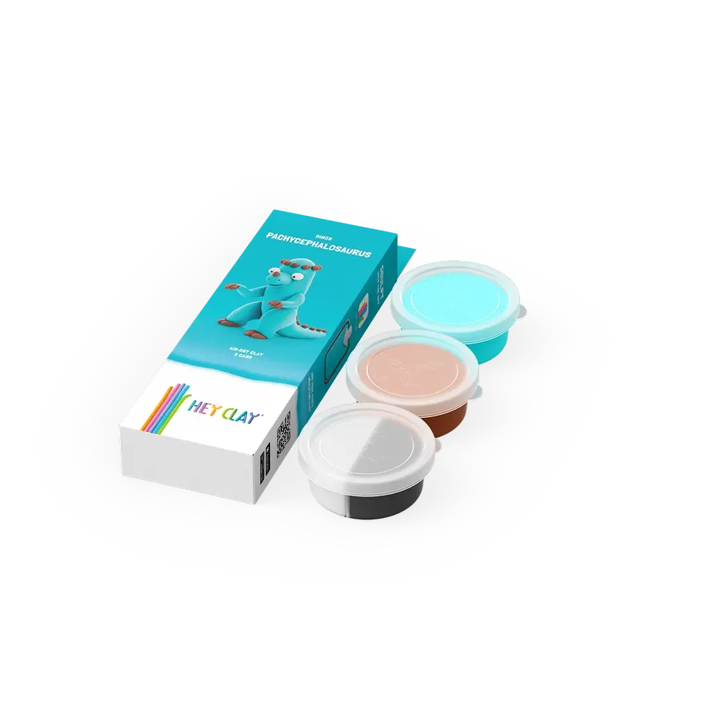 Ga op avontuur met de stoere Pachycephalosaurus! Met Hey Clay maak je deze dino met zijn kenmerkende bolle hoofd en sterke poten. De vrolijke kleuren en zachte textuur maken het kleien extra leuk. Gebruik de app om stap voor stap jouw prehistorische vriend te bouwen!