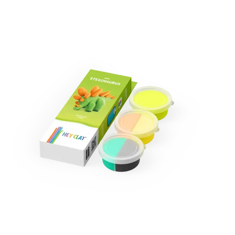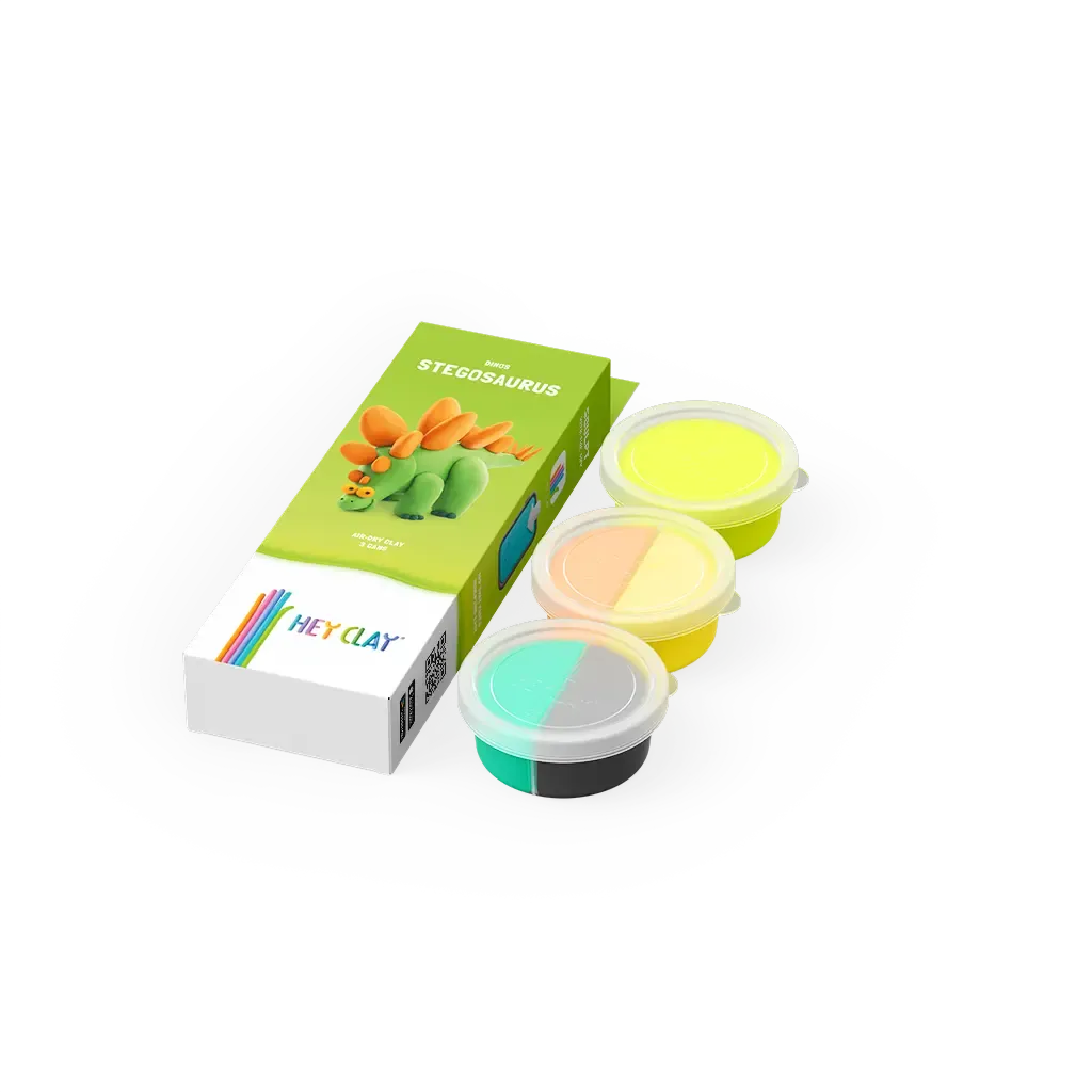 Breng de prehistorie tot leven met de Hey Clay Dino Stegosaurus! Met zijn stekels en lieve glimlach is hij een favoriet onder jonge dino-fans. De zachte, kleurrijke klei is makkelijk te vormen en droogt stevig op. Met de app wordt kleien kinderspel – letterlijk!
