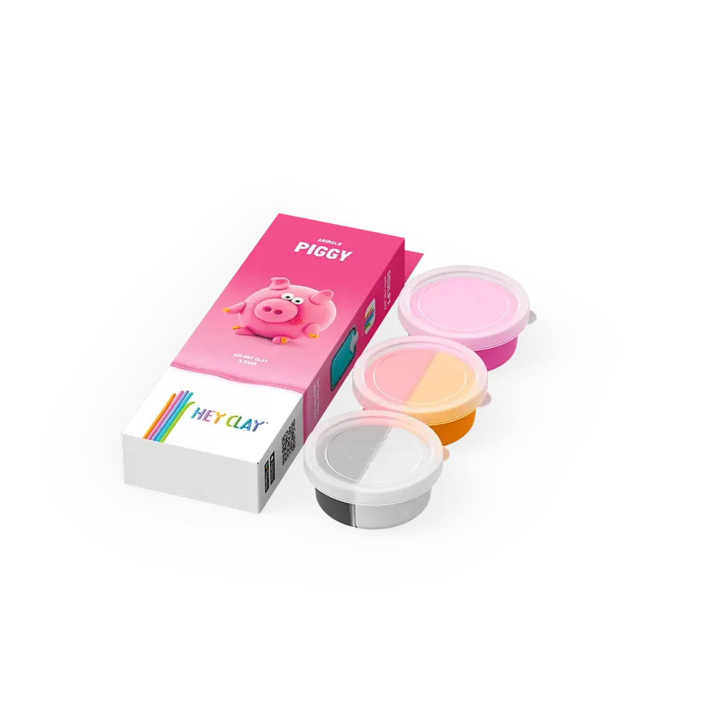 Knor knor! Met Hey Clay Piggy maak je het liefste varkentje ooit. Deze set bevat alle kleuren die je nodig hebt om Piggy te vormen – compleet met krulstaartje en snoetje. De zachte klei is ideaal voor kleine kunstenaars en stimuleert creativiteit en motoriek. Met de app leer je spelenderwijs hoe je Piggy stap voor stap maakt.