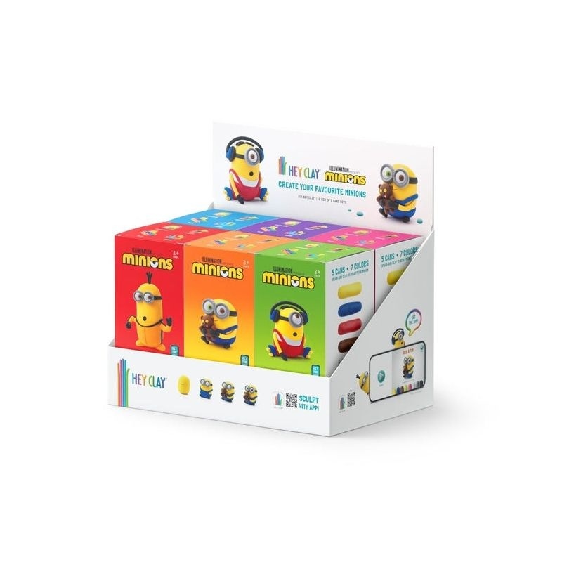 Ontdek de vrolijke wereld van de Minions met het Hey Clay Minions Starter Pack! Deze complete set bevat alles wat je nodig hebt om je eigen gekke, grappige Minions te boetseren. Met de zachte, kleurrijke klei kunnen kinderen hun favoriete karakters tot leven brengen en eindeloos combineren. De bijgeleverde app helpt stap voor stap met leuke animaties, zodat zelfs beginnende kleiers direct succes ervaren. Perfect voor kleine creatievelingen met grote fantasie!