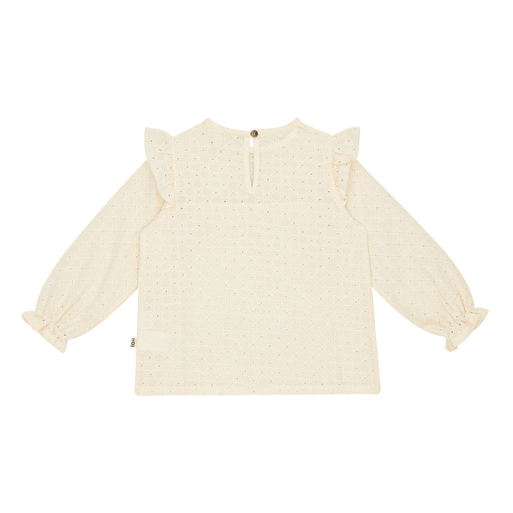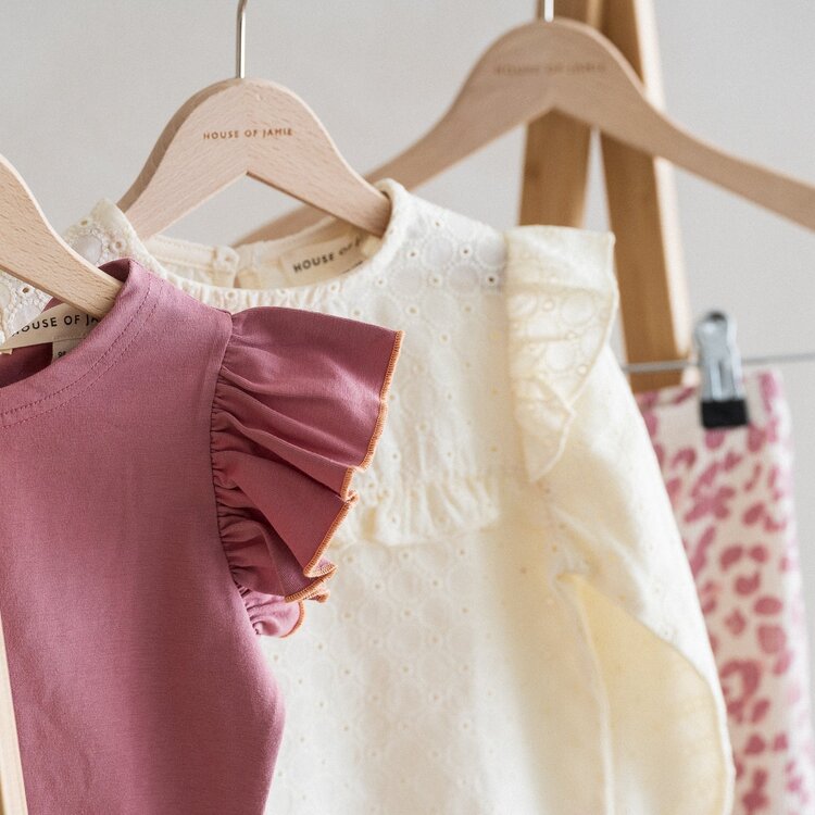 Voeg een volledig geborduurde tuniek toe aan de garderobe van je kleintje. De ruches op de schouders en borstnaad geven dit feestelijke ontwerp een extra ‘girly’ look.