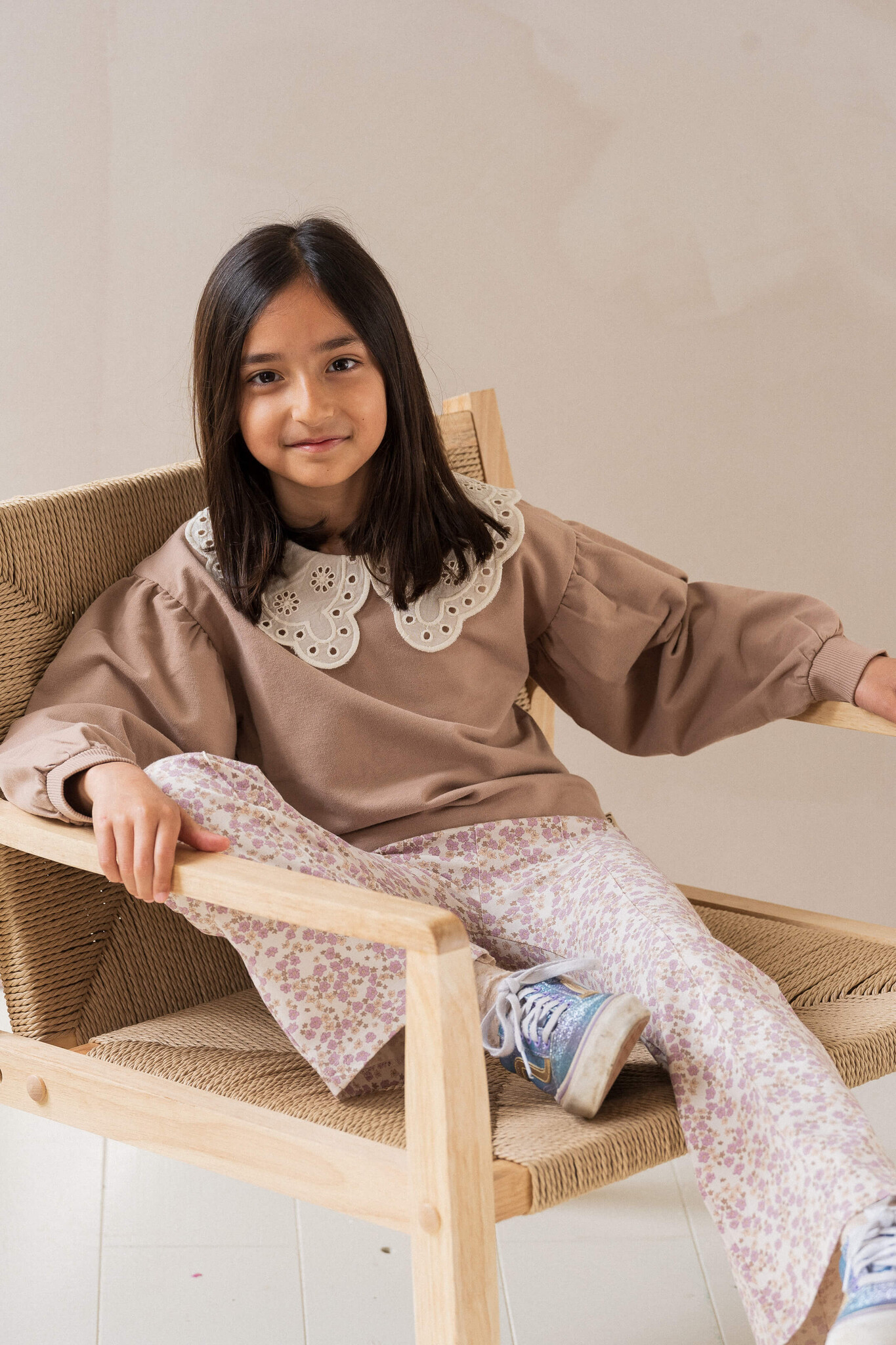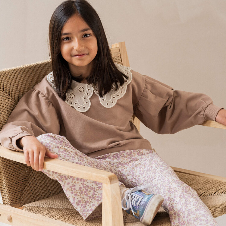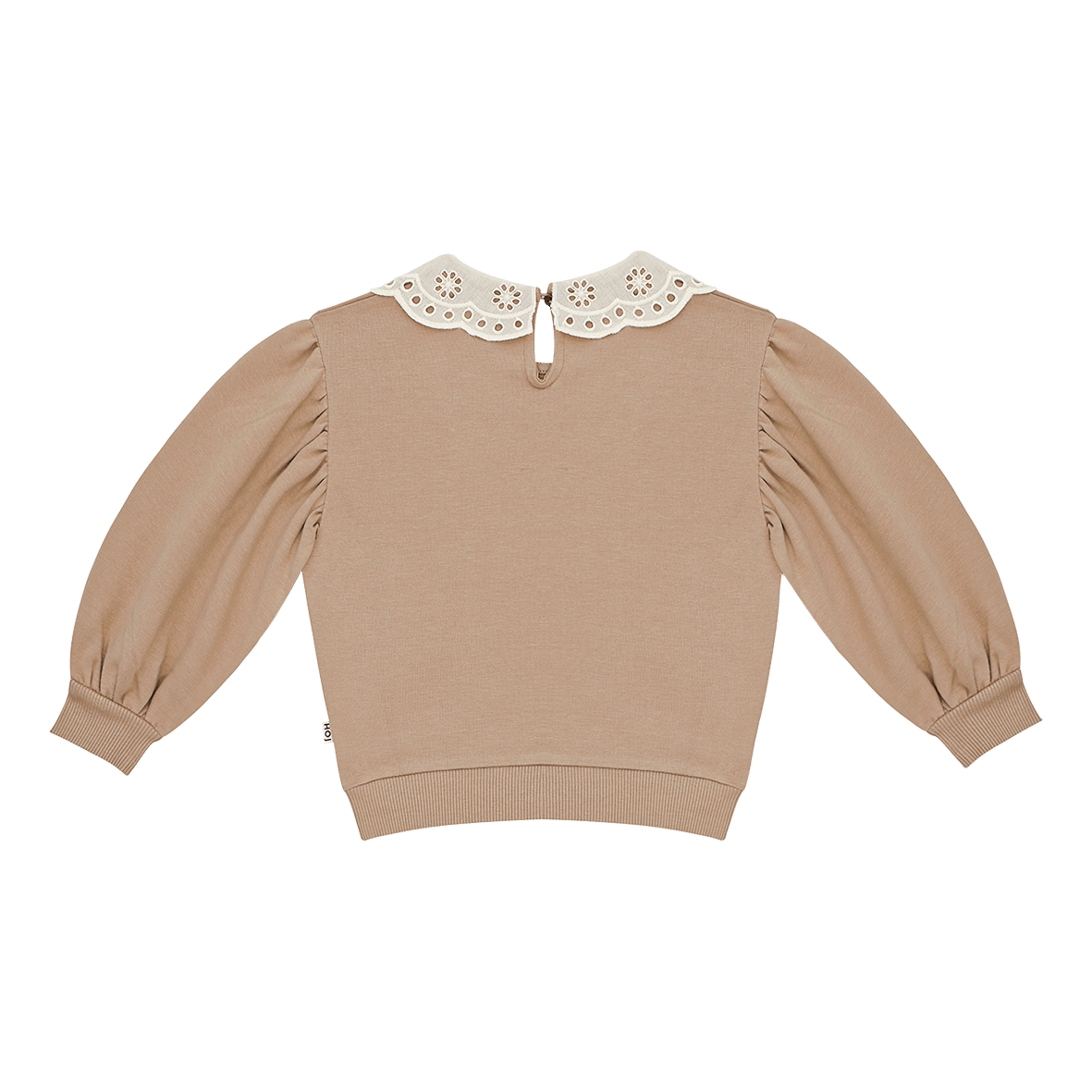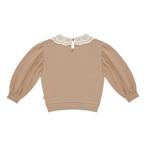 Deze sweater heeft een speels gevoel dankzij de afhangende schouders en de ballonmouwen. Deze speciale editie van onze favoriete balloon sweater heeft een opvallende katoenen geborduurde kraag met en knoop met elastiekje aan de achterzijde.