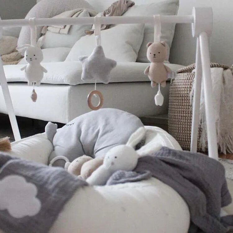 Klassieke houten babygym met een modern ontwerp dat een leuk element zal toevoegen aan de kinderkamer. Voeg ons zachte babygym speelgoed toe en je kind zal een heerlijke tijd hebben met spelen. Het stimuleert de ontwikkeling van de visuele en motorische vaardigheden van het kind. Klassieke babygym van massief hout met strakke lijnen. De gym is gemaakt om sterk en stabiel te zijn. Stimuleert kinderen om te spelen en hand- en oogcoördinatie te ontwikkelen. Het slanke en strakke ontwerp van de babygym en het babygym speelgoed moedigt spelen aan zonder het kind te veel te stimuleren. Laat je baby nooit zonder toezicht spelen met de babygym. Stop het gebruik als het kind zich begint op te trekken of omrolt.