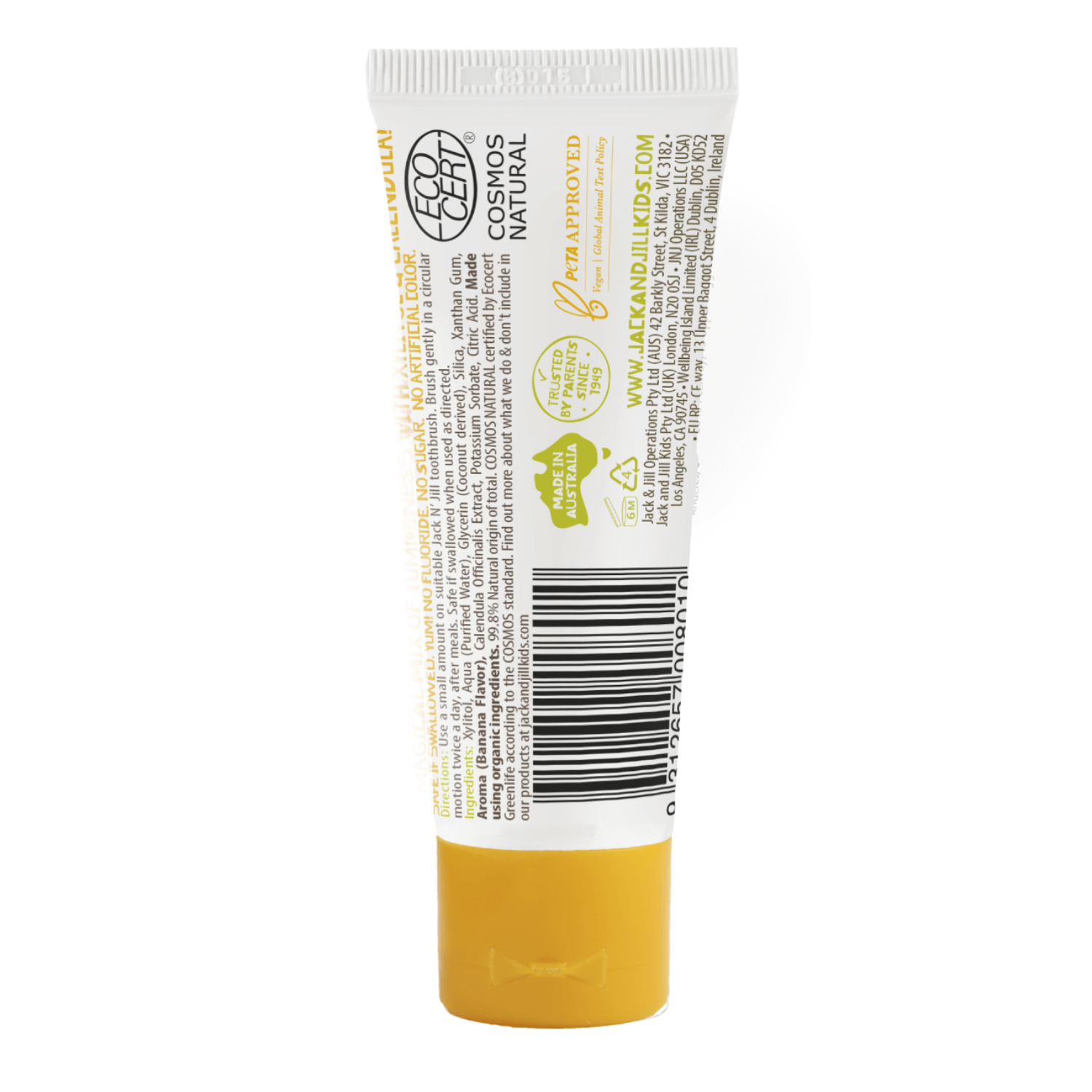 Een lekkere en 100% natuurlijke tandpasta. Ideaal voor kinderen ouder dan 6 maanden. Vrij van vieze smaakjes en veilig om door te slikken en dat in een hippe verpakking! De meest veilige tandpasta voor kinderen en bevat geen kleurstoffen, suiker, fluoride en chemische bewaarmiddelen. Rijk aan Xylitol