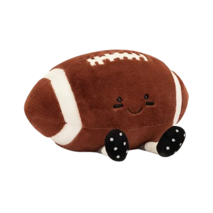 Laat je kleintje scoren met de Jellycat Amuseable Sports American Football – een heerlijk zachte knuffel in de vorm van een stoere rugbybal! Met zijn brede glimlach, knusse suède-look en bungelende corduroy beentjes is dit knuffelmaatje niet alleen superleuk om mee te spelen, maar ook een echte blikvanger in de baby- of kinderkamer.