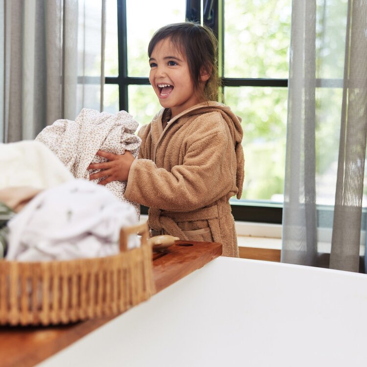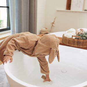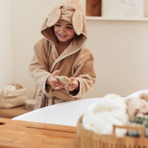 Een badstof badjasje is altijd handig voor jouw peuter. De badjas is perfect om te gebruiken na het badderen, douchen of peuterzwemmen. De zachte badstof neemt gemakkelijk water op en houdt daarmee jouw kleintje lekker warm. De vrolijke capuchon met oren droogt gemakkelijk de haartjes. Het badjasje is ook handig om mee te nemen op vakantie of mee naar een logeerpartijtje.