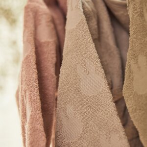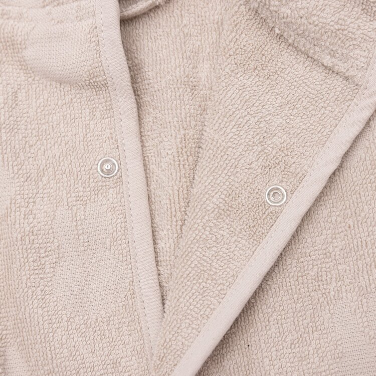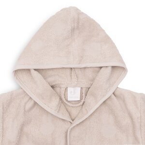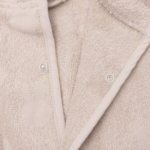 Super leuk badjasje met subtiele Nijntje touch. Een badstof badjasje is altijd handig voor jouw dreumes. De badjas is perfect om te gebruiken na het badderen, douchen of zwemmen. De zachte badstof neemt gemakkelijk water op en houdt daarmee jouw kleintje lekker warm. De capuchon droogt gemakkelijk de haartjes. Het badjasje is ook handig om mee te nemen op vakantie of mee naar een logeerpartijtje. Het badjasje heeft een handig drukknoopje om hem dicht te houden bij het dragen, elastiek in het rugpand voor de perfecte pasvorm en de ceintuur zit aan het badjasje vast zodat je hem niet kan verliezen. Het badjasje gebruik je al bij de leeftijd van 3 jaar en past tot ongeveer een leeftijd van 4 jaar. Dit is ook afhankelijk van hoe groot jouw kindje is. Het badjasje is effen van kleur en in de badstof is Nijntje ingeweven. Verkrijgbaar in olive green, nougat en wild rose.