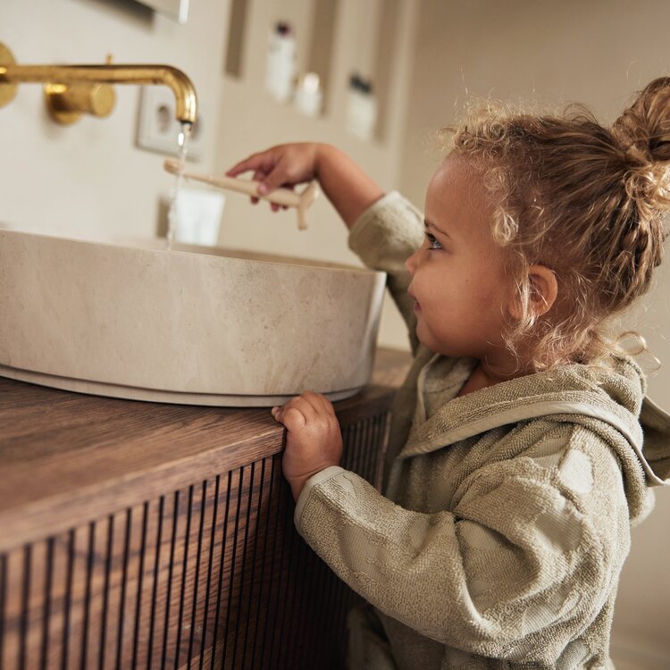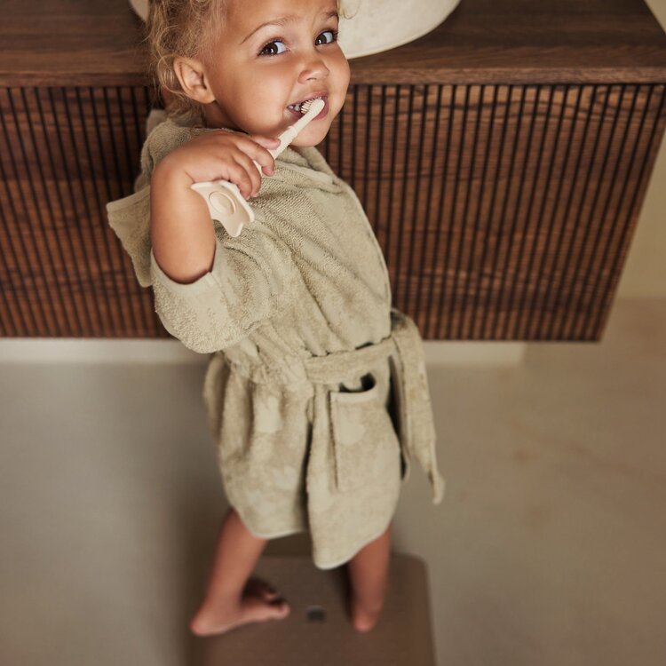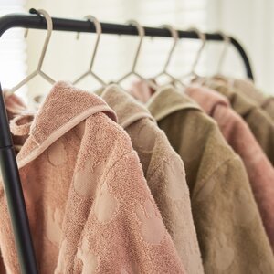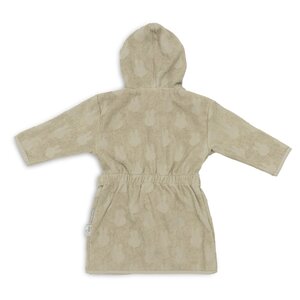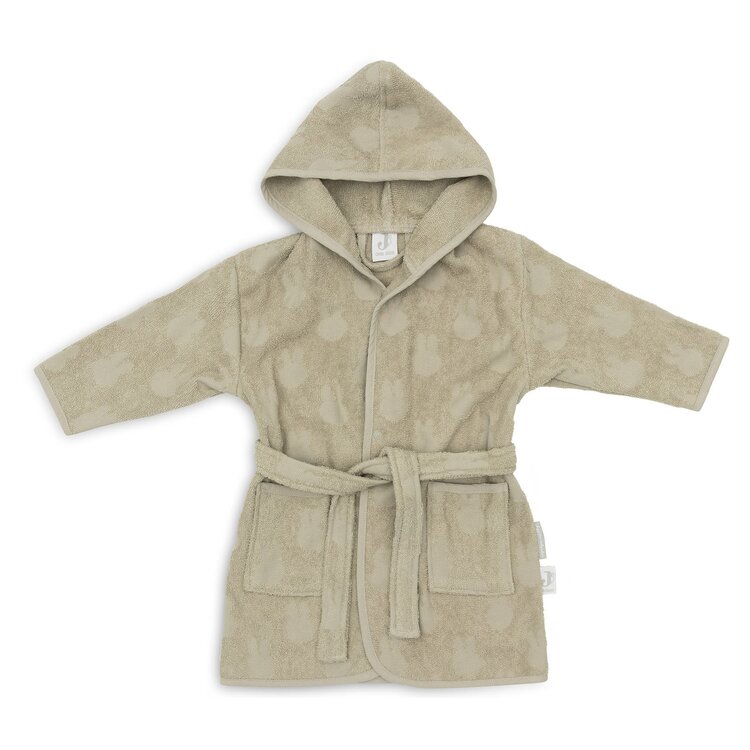 Super leuk badjasje met subtiele Nijntje touch. Een badstof badjasje is altijd handig voor jouw dreumes. De badjas is perfect om te gebruiken na het badderen, douchen of zwemmen. De zachte badstof neemt gemakkelijk water op en houdt daarmee jouw kleintje lekker warm. De capuchon droogt gemakkelijk de haartjes. Het badjasje is ook handig om mee te nemen op vakantie of mee naar een logeerpartijtje. Het badjasje heeft een handig drukknoopje om hem dicht te houden bij het dragen, elastiek in het rugpand voor de perfecte pasvorm en de ceintuur zit aan het badjasje vast zodat je hem niet kan verliezen. Het badjasje gebruik je al bij de leeftijd van 3 jaar en past tot ongeveer een leeftijd van 4 jaar. Dit is ook afhankelijk van hoe groot jouw kindje is. Het badjasje is effen van kleur en in de badstof is Nijntje ingeweven. Verkrijgbaar in olive green, nougat en wild rose.