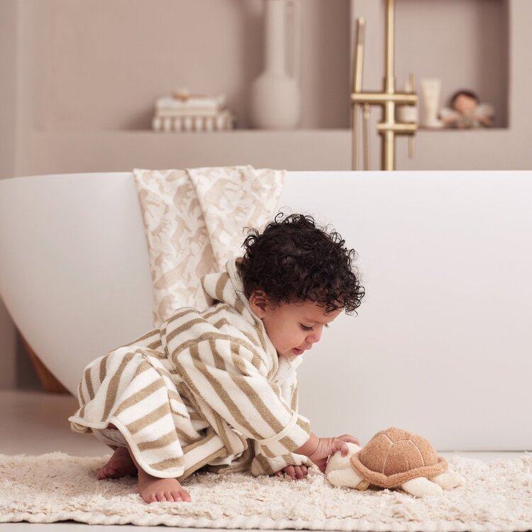 Onze kinderbadjasjes zijn niet alleen heerlijk zacht, maar ook milieuvriendelijk met hun GOTS-certificering. Gemaakt van hoogwaardige badstof, bieden ze het ultieme comfort na het badderen. Deze badjasjes zijn voorzien van een handige capuchon, een drukknoopje voor de perfecte pasvorm en een praktische band om ze stevig vast te strikken.