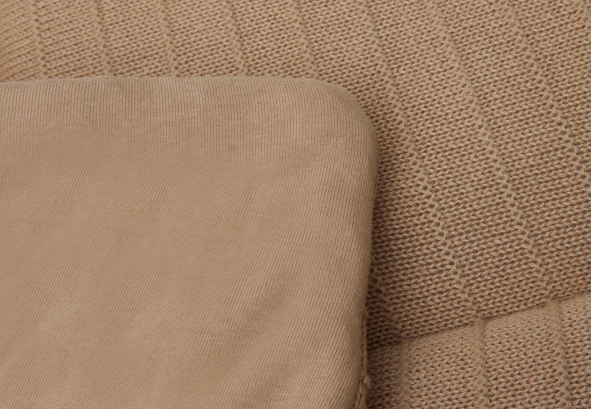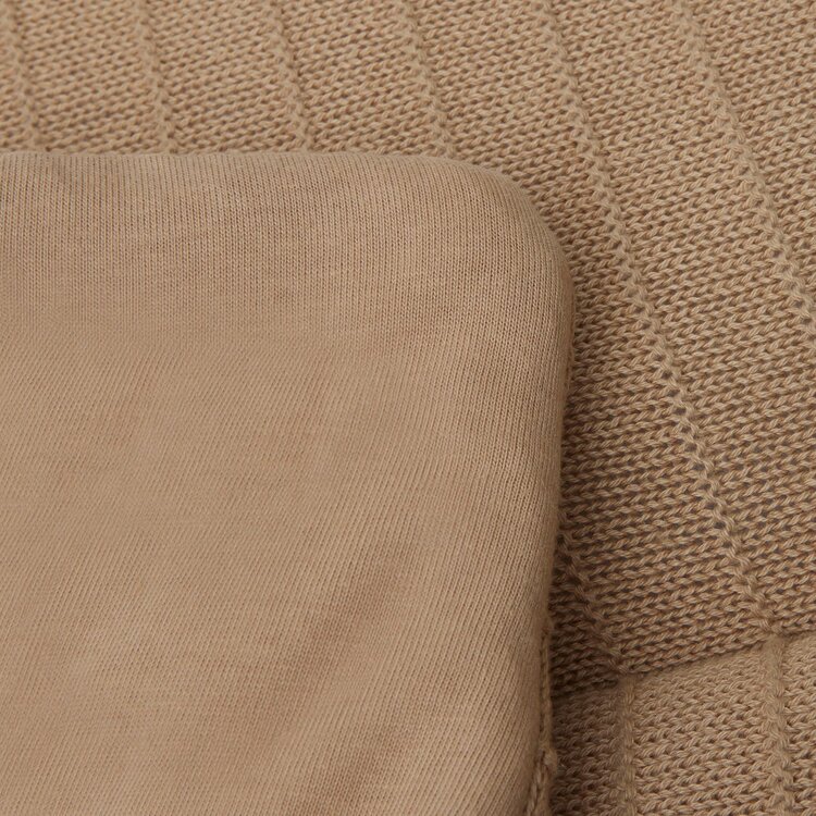 De gebreide bovenkant van het Pure Knit boxkleed van 100% organisch katoen. De vulling bestaat uit polyester fibre fill.