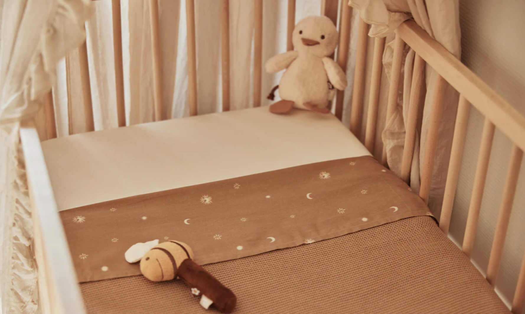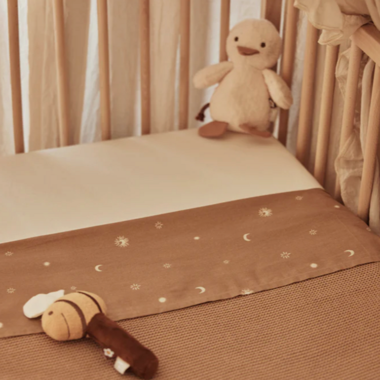 Gebruik de deken met een lakentje van Jollein om je kindje veilig strak in te stoppen.