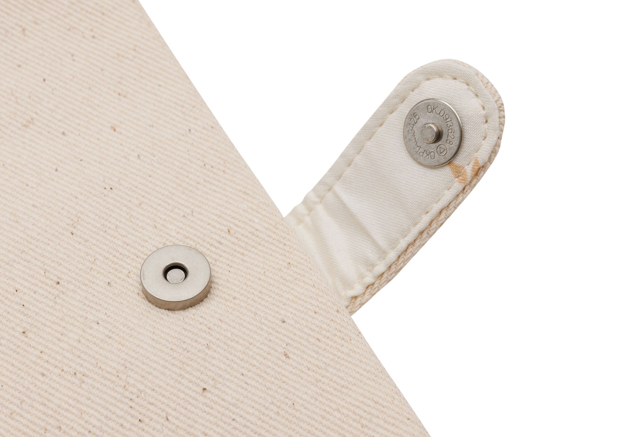Dit handige accessoire is perfect om het boekje van het consultatiebureau in te bewaren, waardoor je belangrijke informatie altijd bij de hand hebt. Bovendien kan het dienen als een stijlvol luieretui om luiertjes en billendoekjes netjes georganiseerd te houden. De praktische sluiting met drukknoopje zorgt ervoor dat alles veilig opgeborgen blijft, waar je ook naartoe gaat. Voeg een vleugje elegantie toe aan je baby-essentials met onze groeiboekje omslag in natuurlijke linnen-look twill.