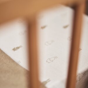 Hoe leuk is dit hoeslakentje met het schattige Nijntje printje? Daarnaast beschermt het hoeslaken het matrasje van het ledikantje. Voor de beste bescherming gebruik je dit jersey hoeslaken over het dikkere molton hoeslaken. Het hoeslakentje heeft elastieken, zodat deze goed blijft zitten om het matrasje. Op zoek naar een hoeslakentje voor in het ledikantje? Die verkoopt Jollein ook!